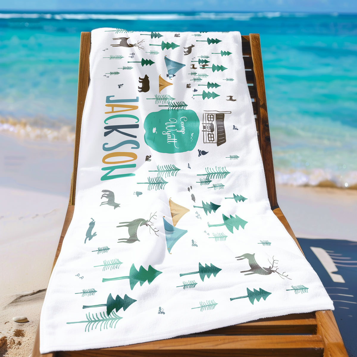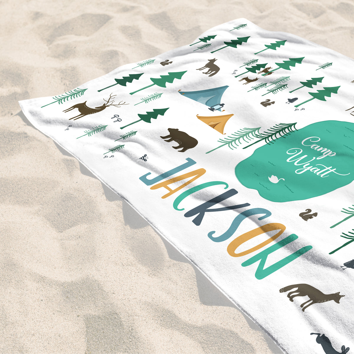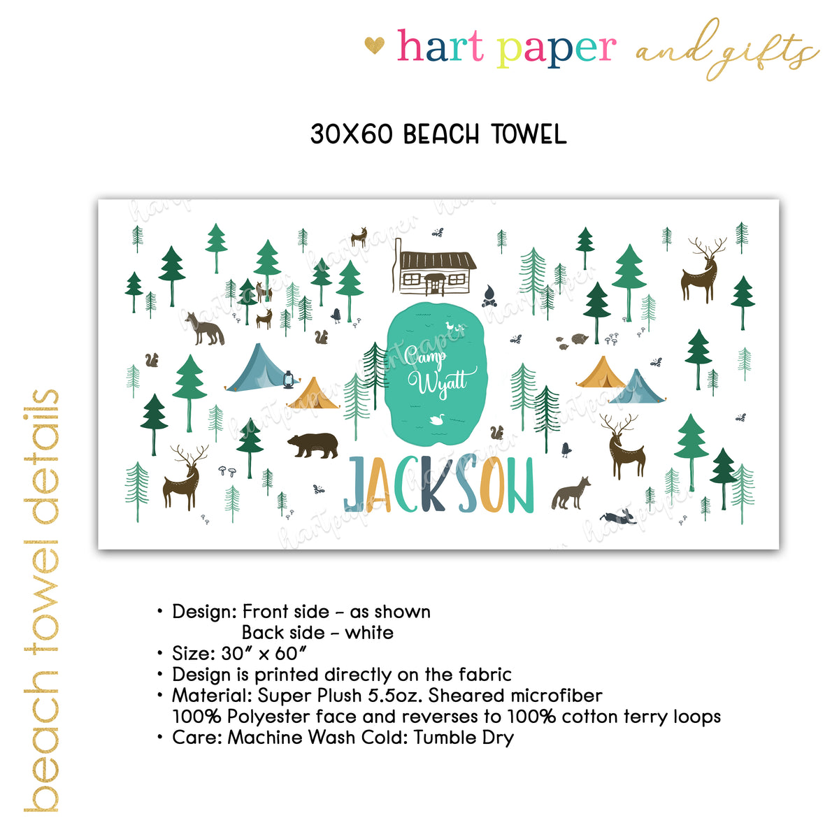 Camping Camp Personalized Beach Towel • Custom 30x60 Swimming Swim Bath Bathroom Pool