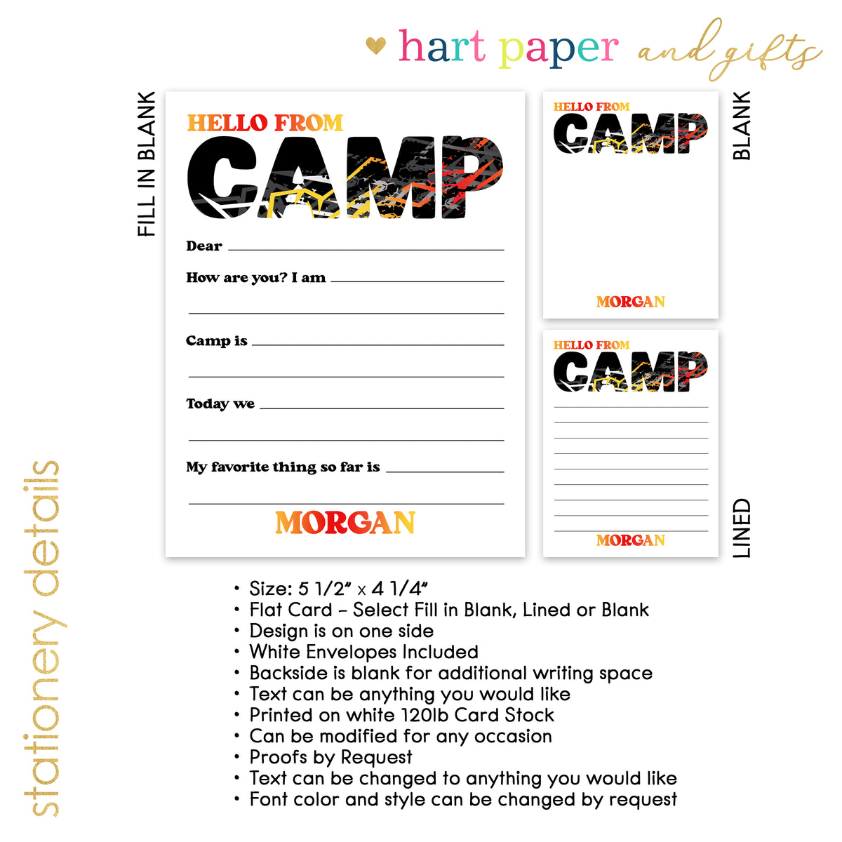 Cute & Custom Summer Camp Notecards for Kids – Fill-in-the-Blank, Blank & Lined Styles!