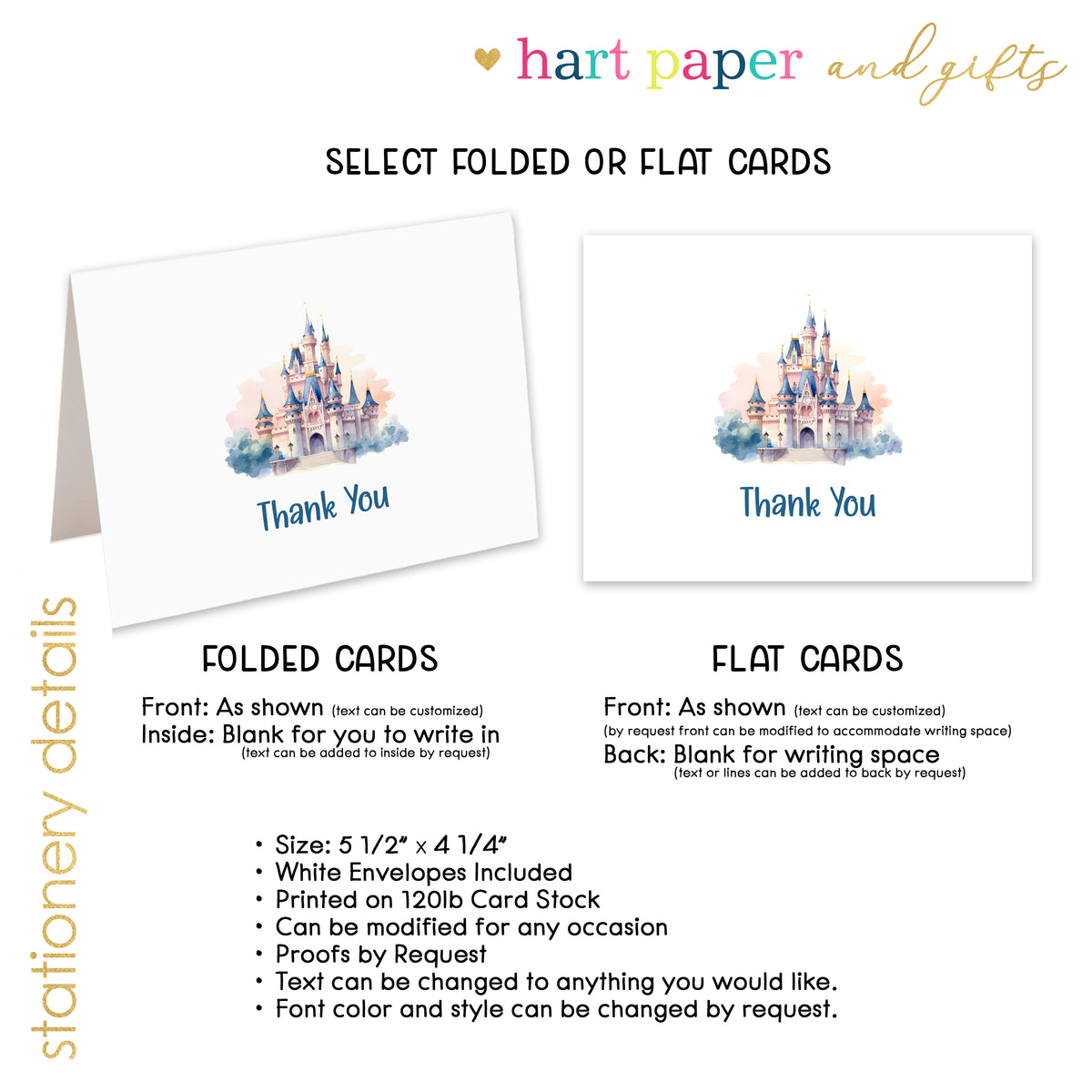 Castle Thank You Cards Note Card Personalized Custom Stationery • Flat or Folded