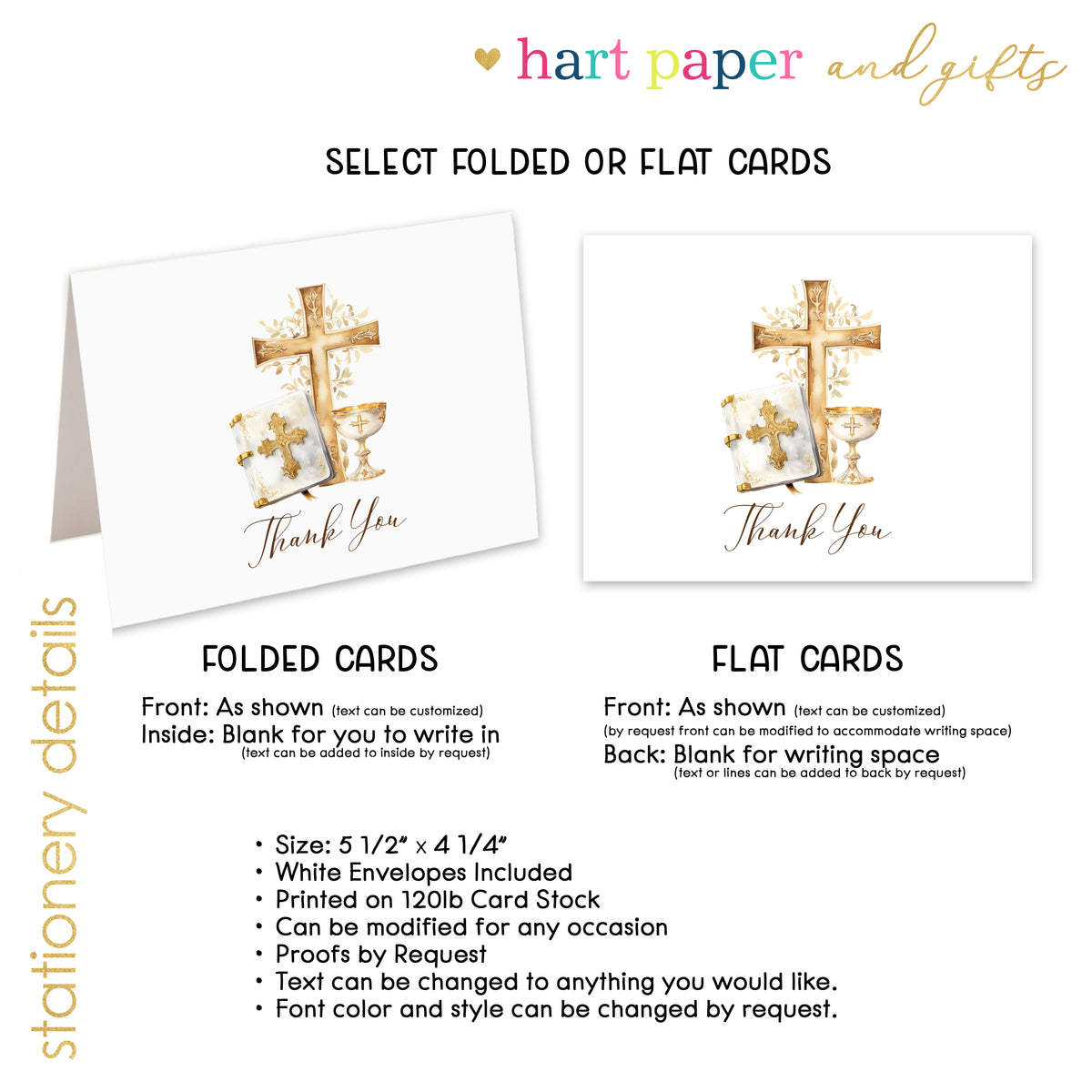 Chalice Cross Thank You Cards Note Card Personalized Custom Stationery • Flat or Folded
