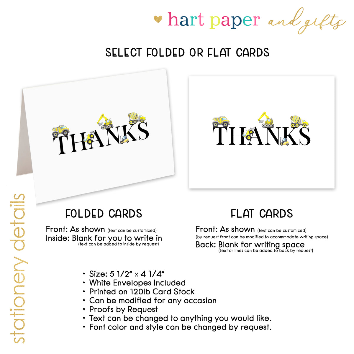 Construction Thank You Cards Note Card Personalized Custom Stationery • Flat or Folded