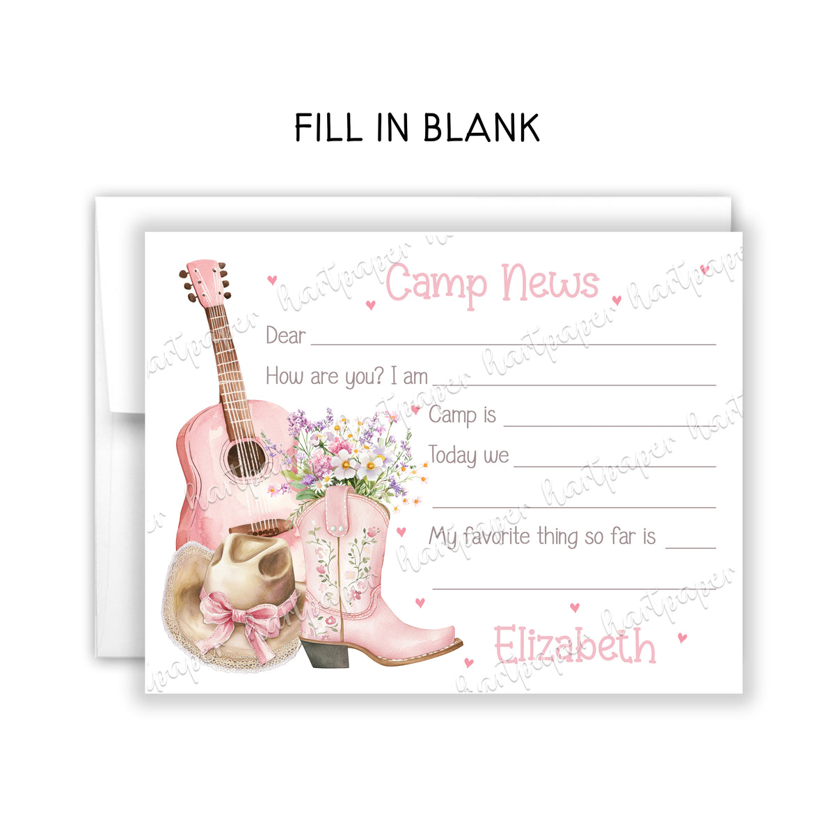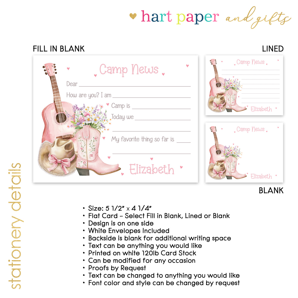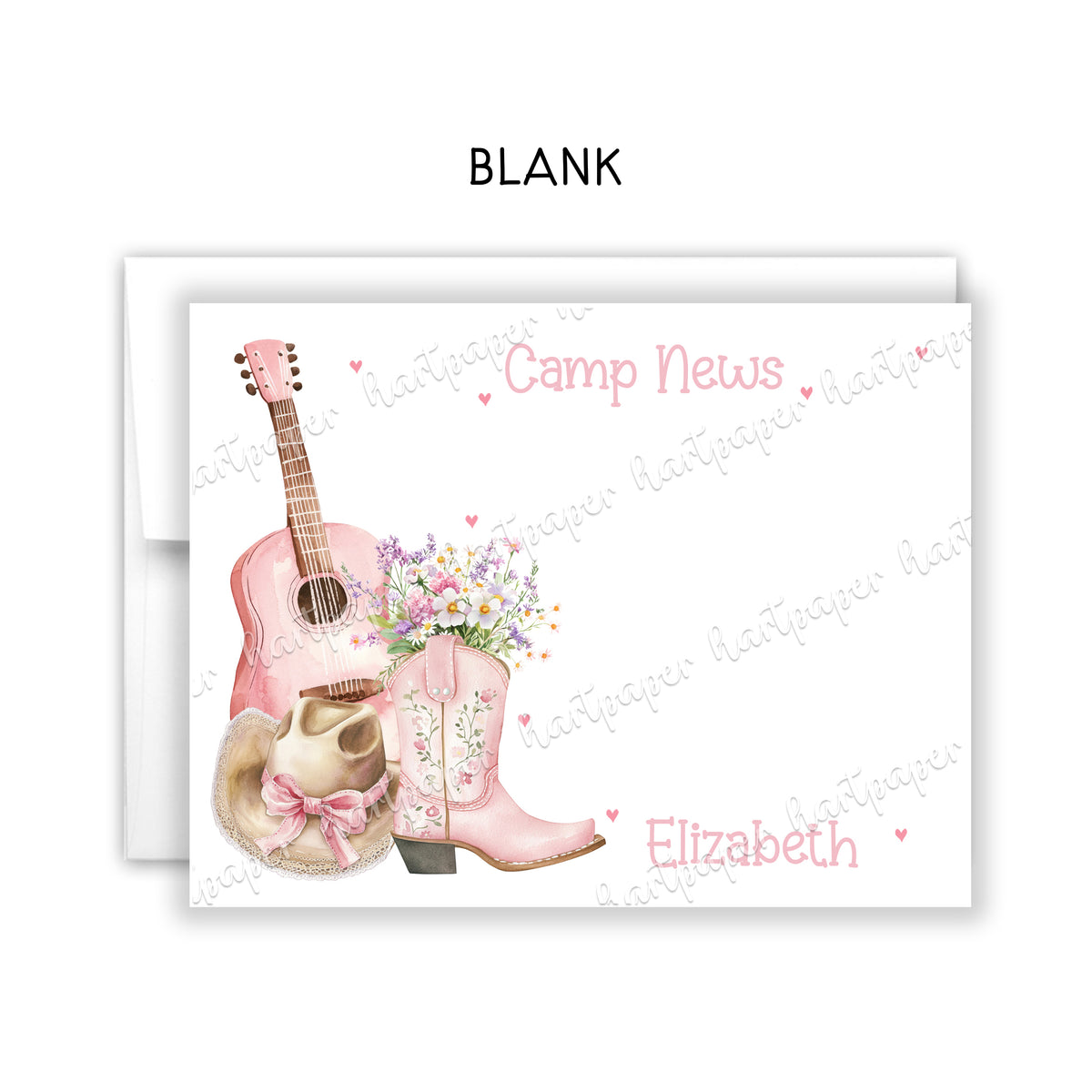 Cowboy Guitar Camp News Summer Camping Note Cards Stationery Custom Personalized • Fill in Blank, Lined or Blank Cards