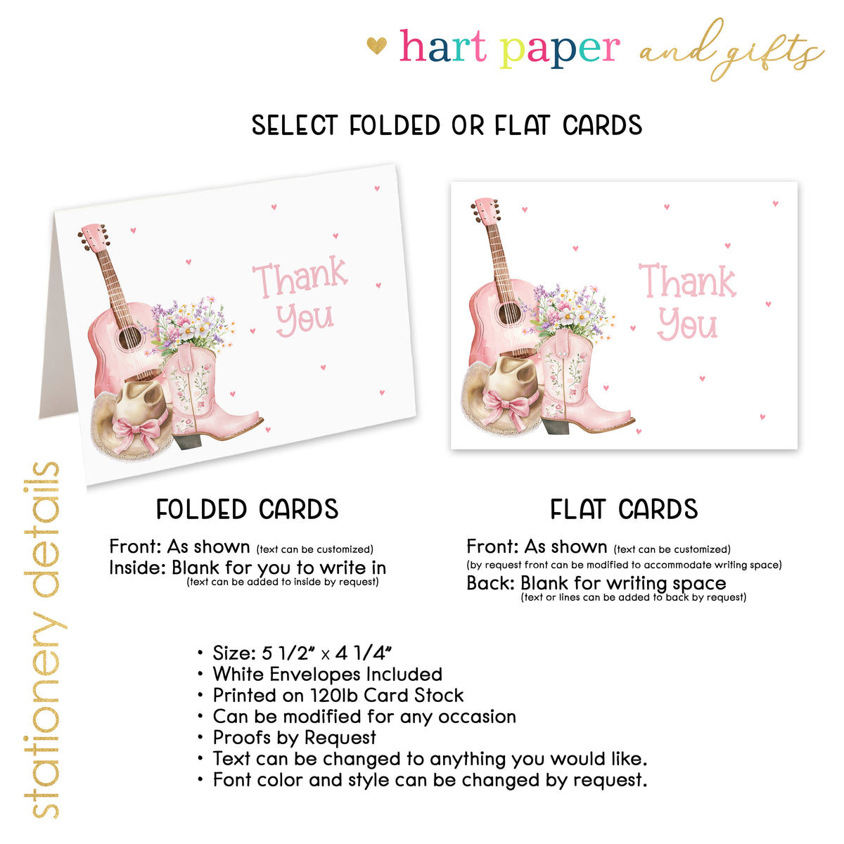 Cowgirl Hat Thank You Cards Note Card Personalized Custom Stationery • Flat or Folded