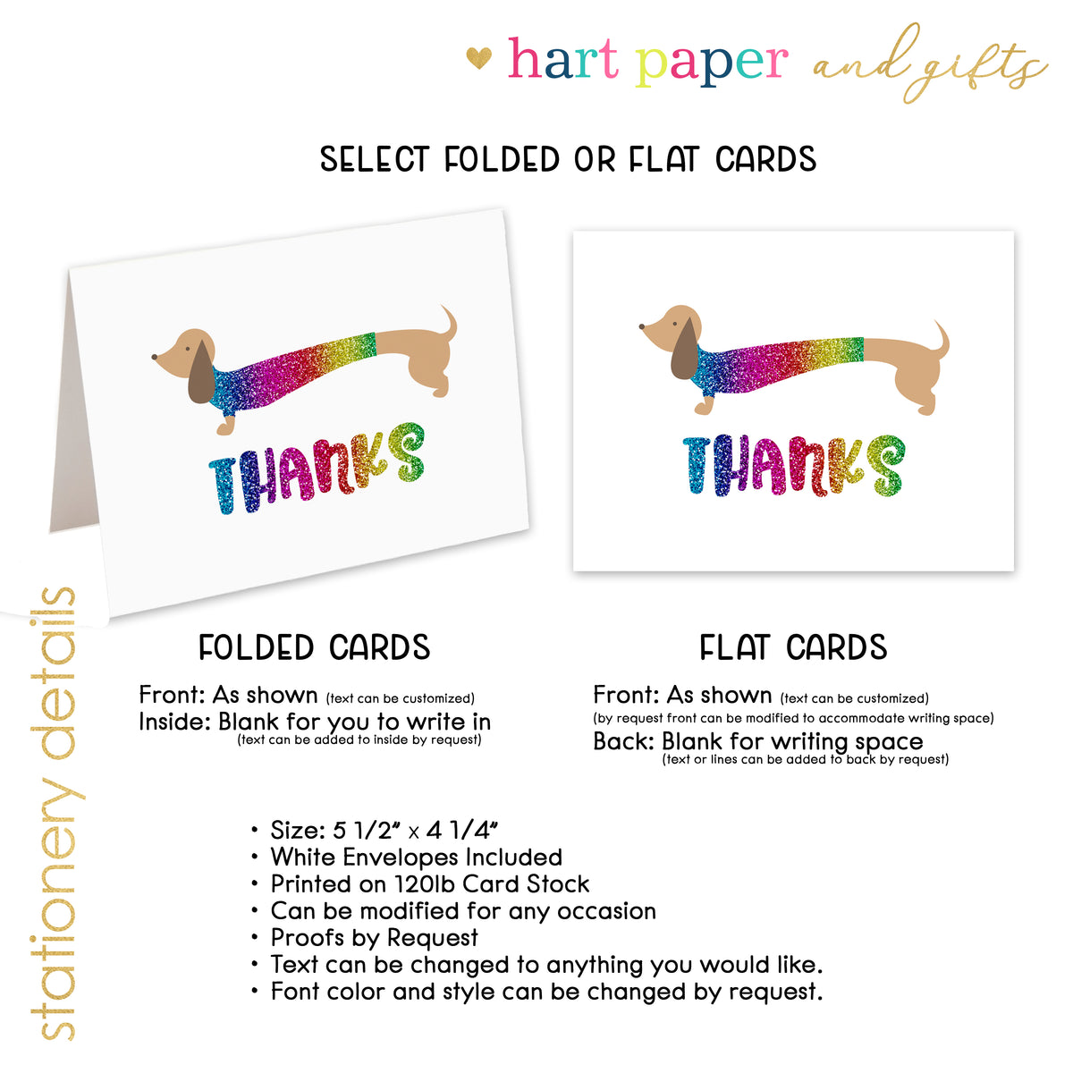 Dachshund Doxie Dog Thank You Cards Note Card Personalized Custom Stationery • Flat or Folded