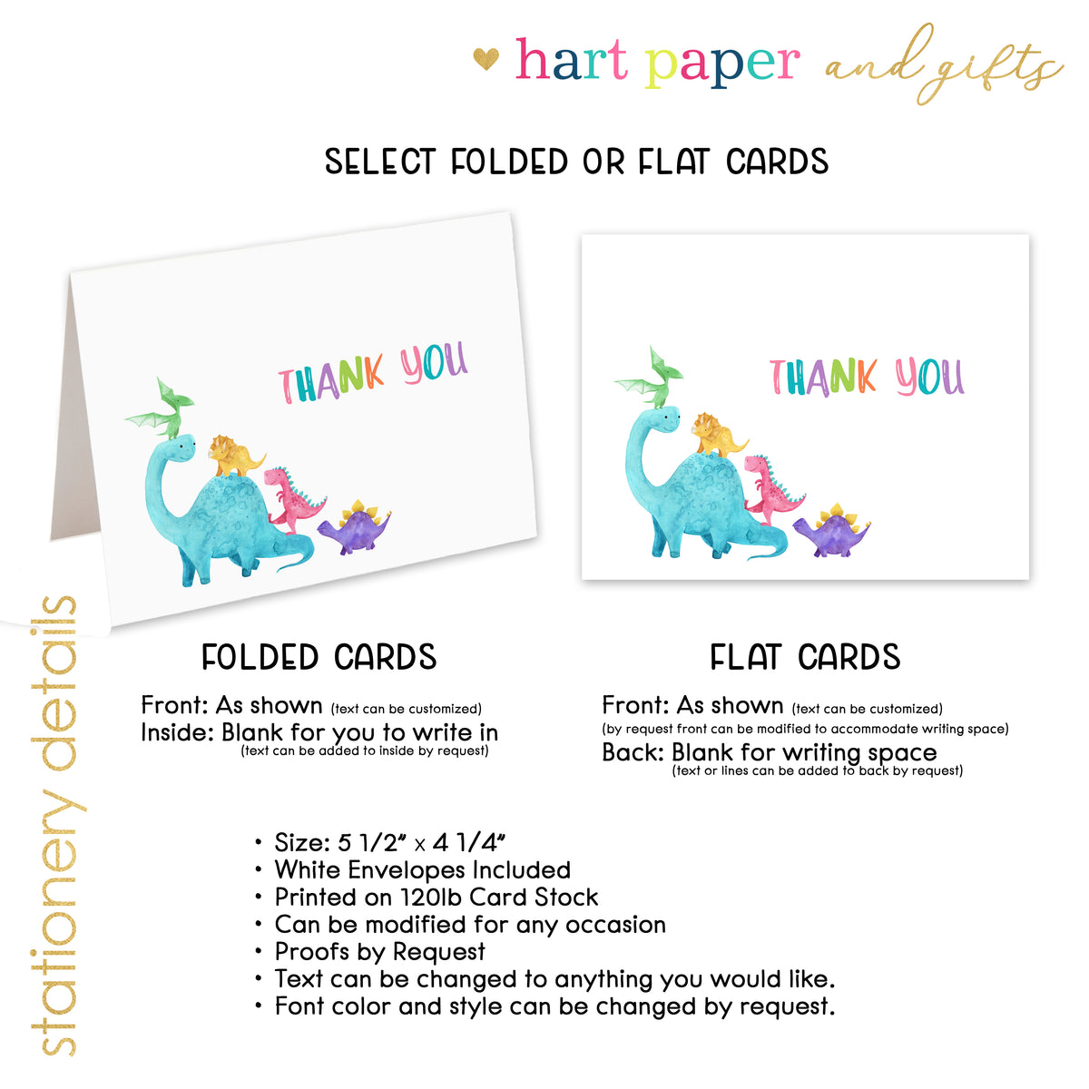 Dinosaur Rainbow Thank You Cards Note Card Personalized Custom Stationery • Flat or Folded