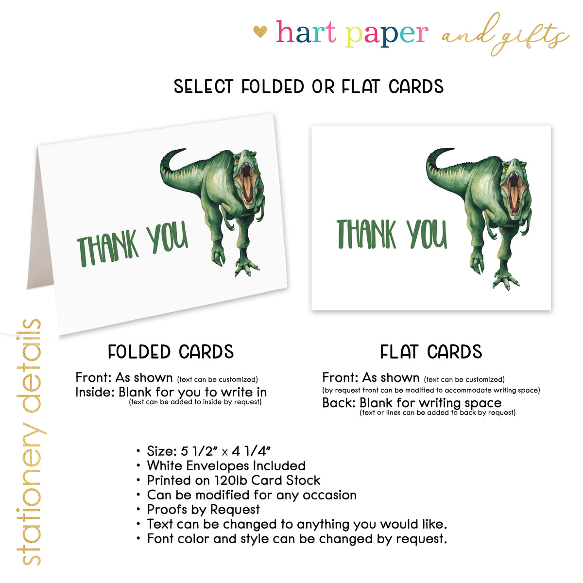 Dinosaur Thank You Cards Note Card Personalized Custom Stationery • Flat or Folded