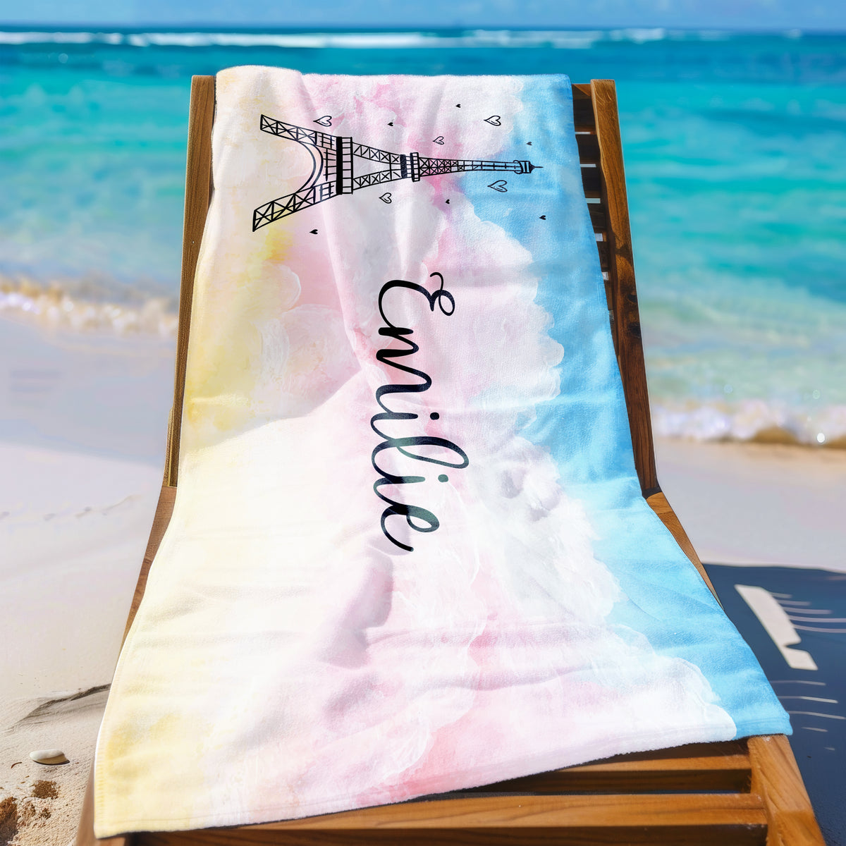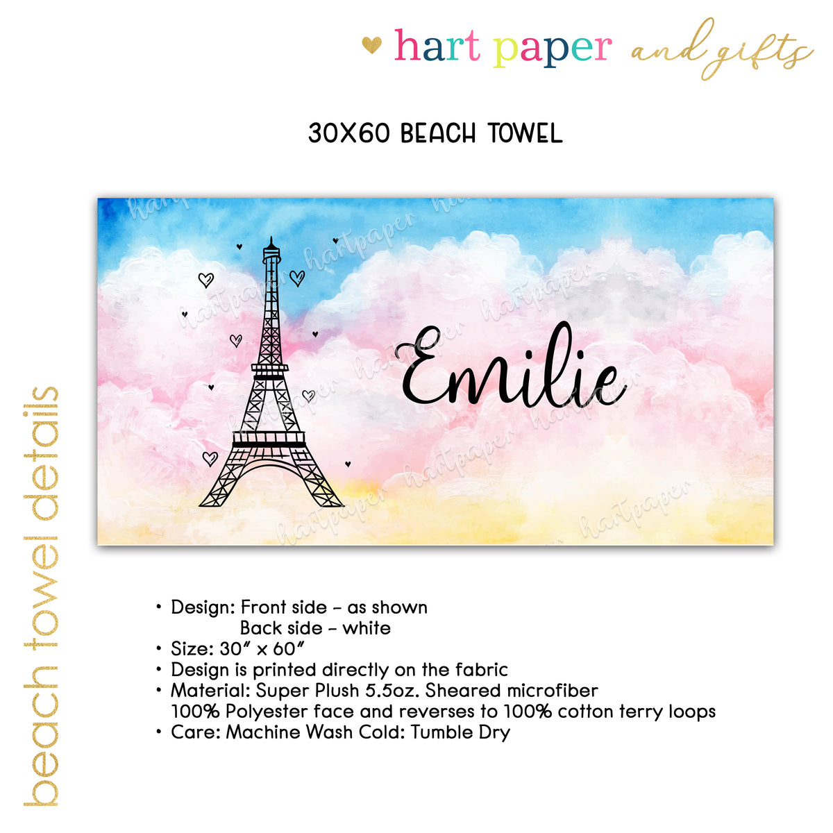Eiffel Tower Personalized Beach Towel • Custom 30x60 Swimming Swim Bath Bathroom Pool