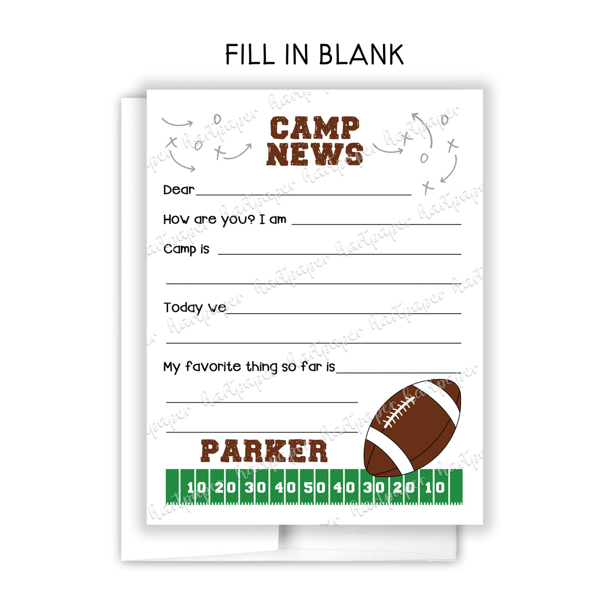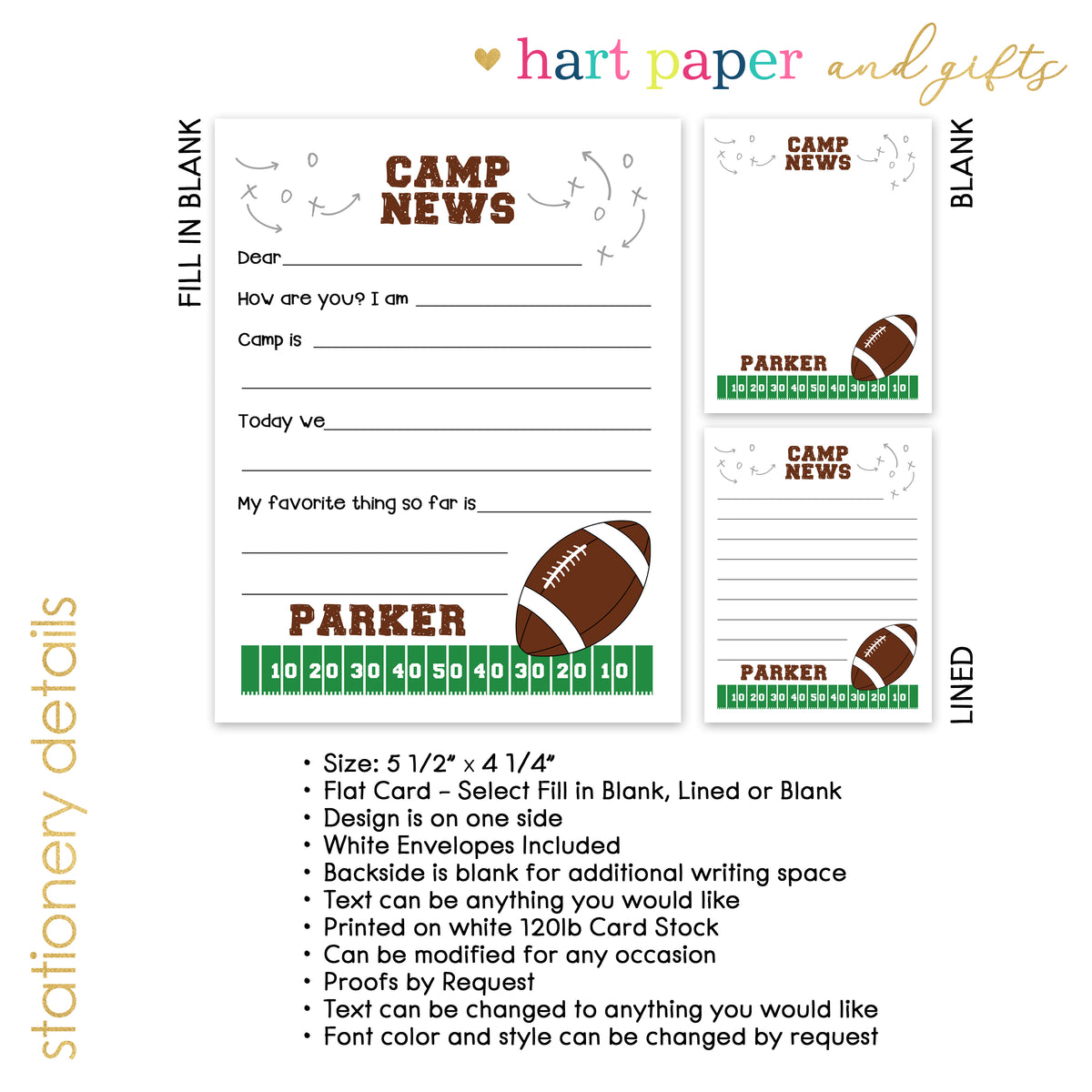 Football Sports Summer Camp Camping Note Cards Stationery Custom Personalized • Fill in Blank, Lined or Blank Cards