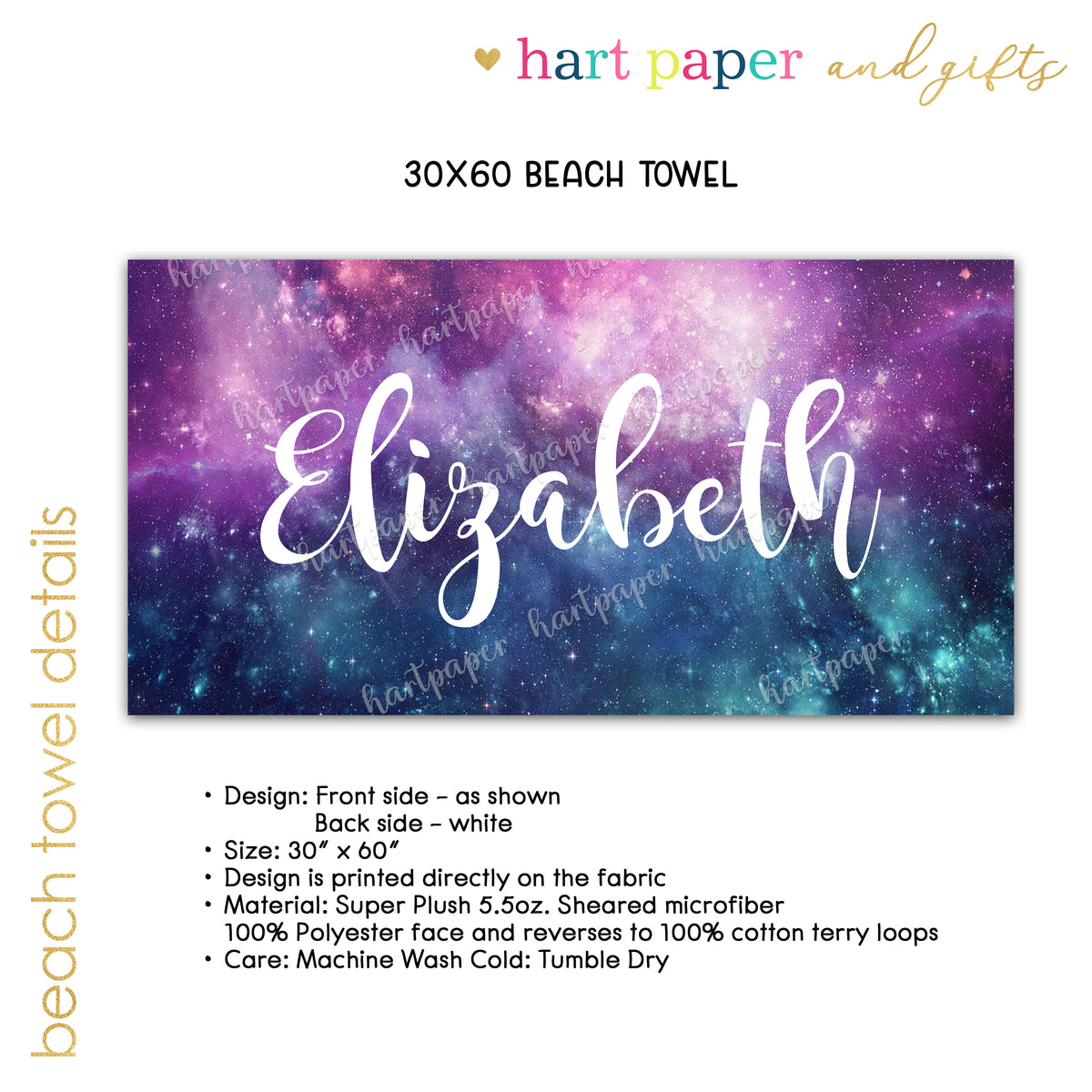 Galaxy Personalized Beach Towel • Custom 30x60 Swimming Swim Bath Bathroom Pool