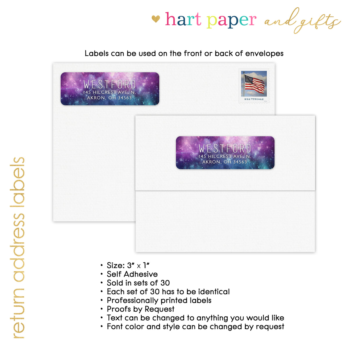 Galaxy Stars Return Address Labels Personalized Custom • Self Adhesive Stickers