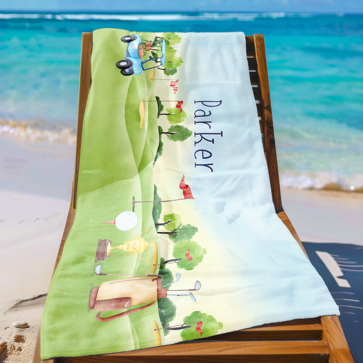 Golf Sports Personalized Beach Towel • Custom 30x60 Swimming Swim Bath Bathroom Pool