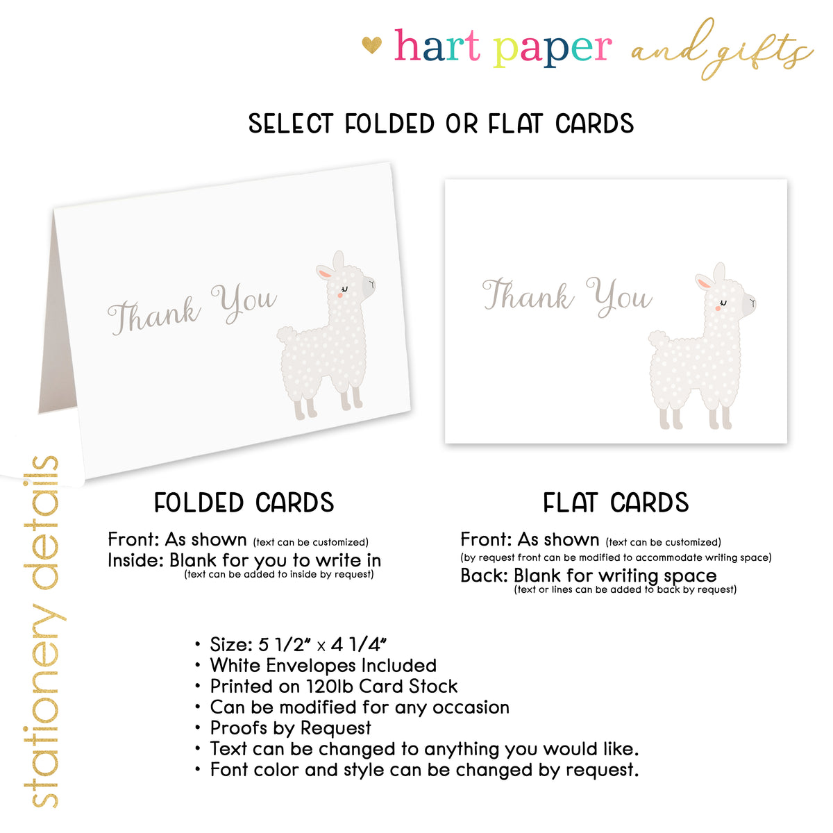 Llama Thank You Cards Note Card Personalized Custom Stationery • Flat or Folded