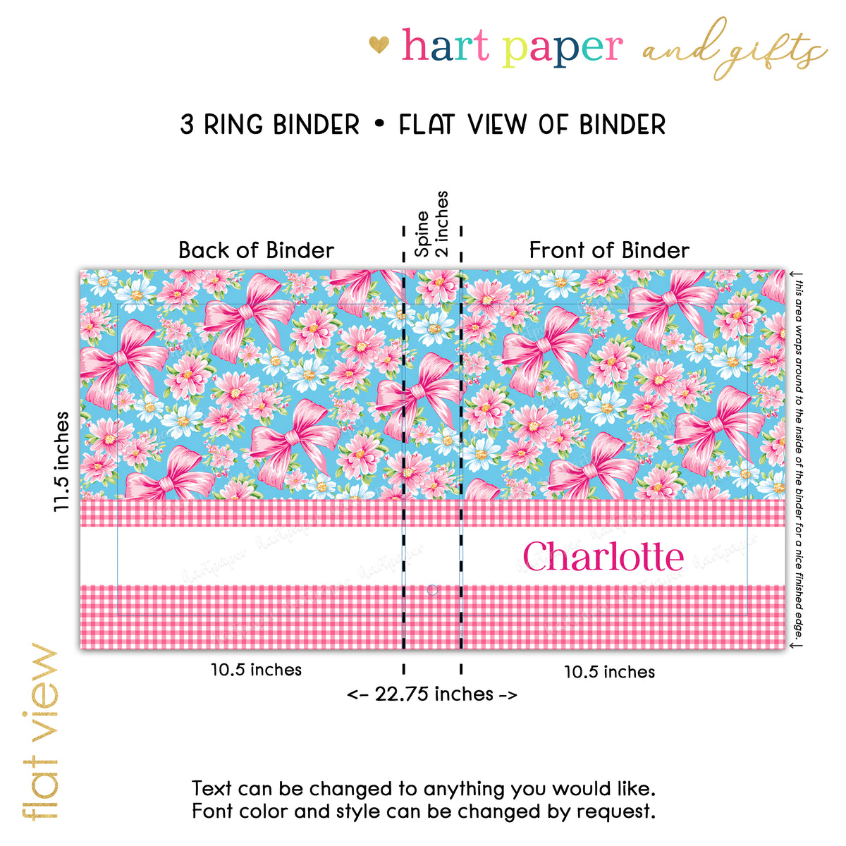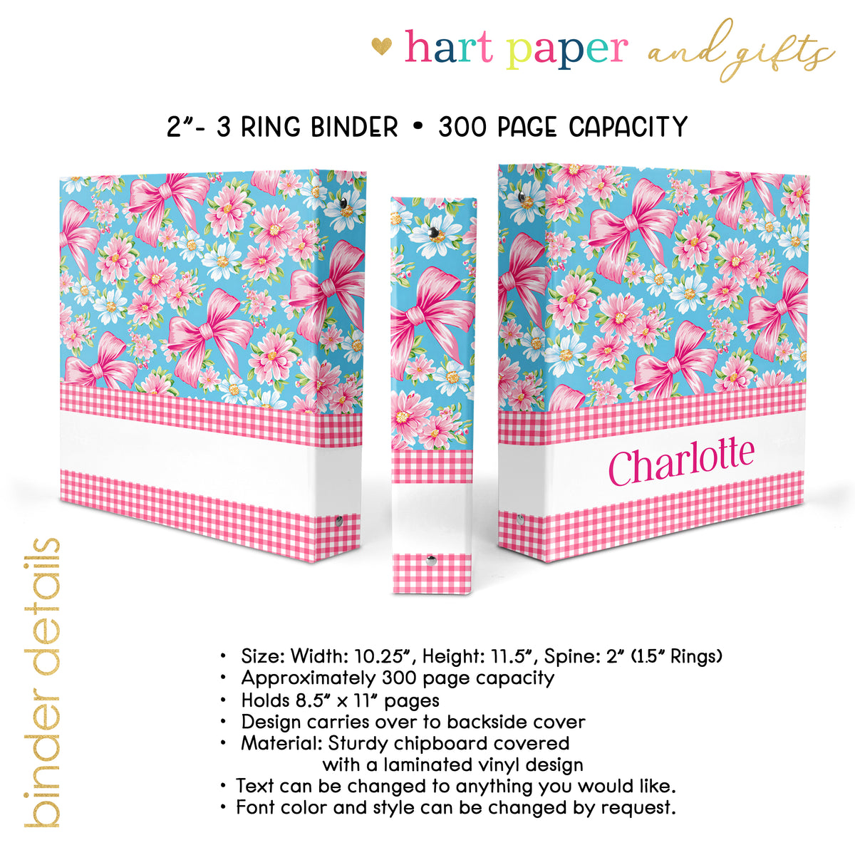 Pink Bow Coquette Flowers Personalized Custom 2" 3 Ring Binder • School Office Supplies
