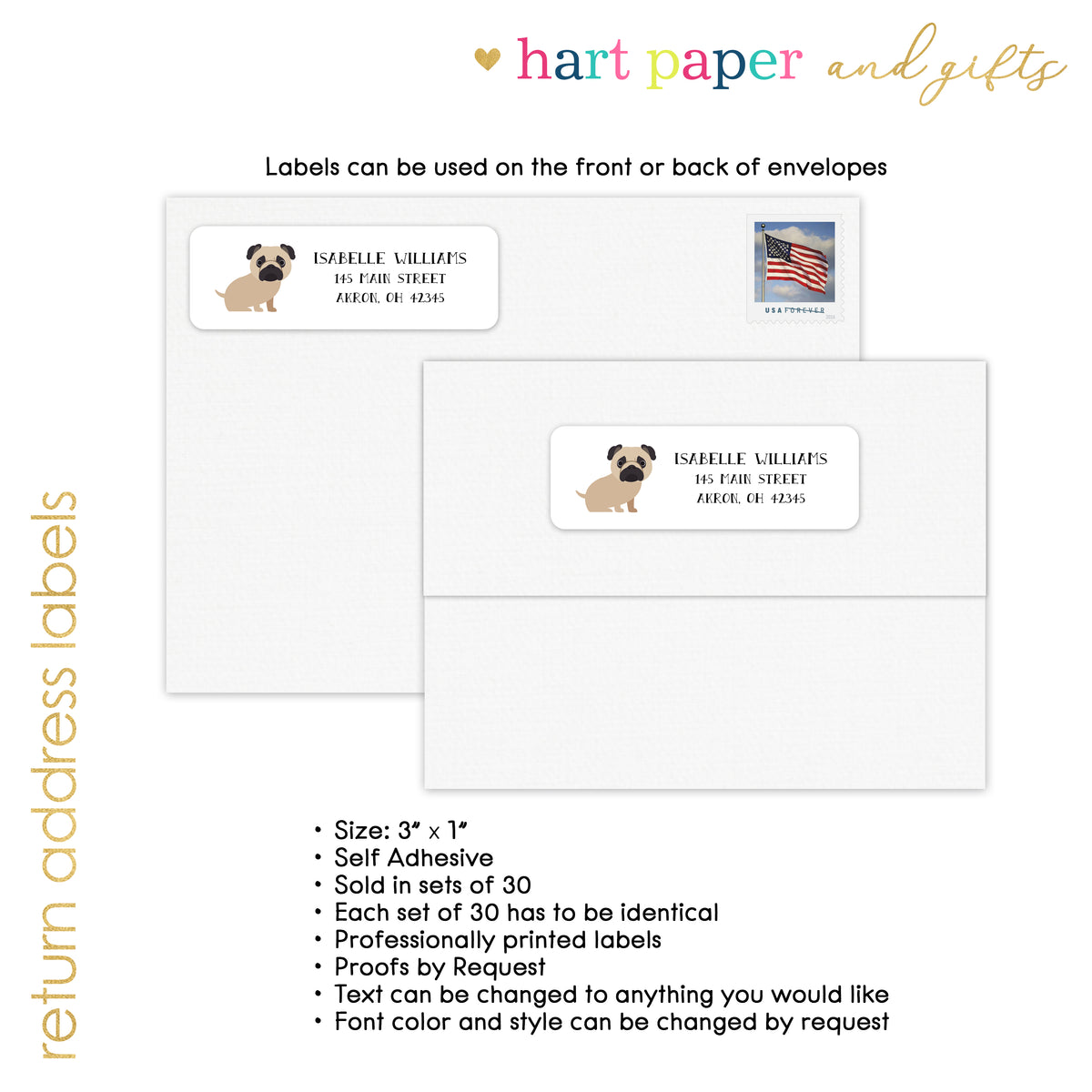 Pug Dog Return Address Labels Personalized Custom • Self Adhesive Stickers