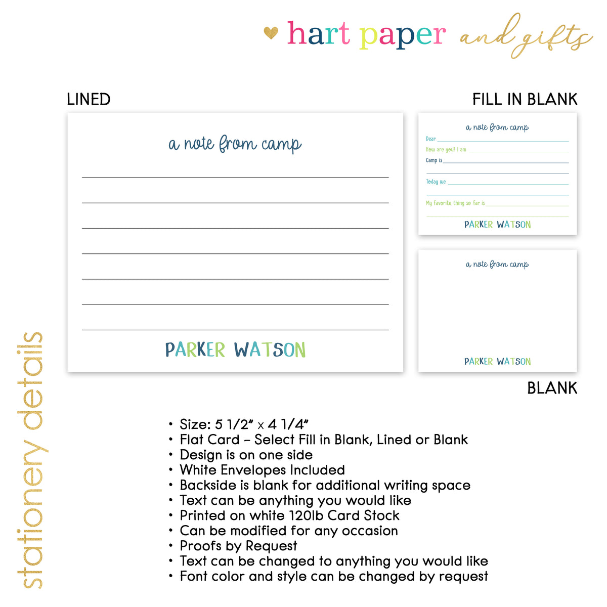 Whether they’re painting masterpieces, roasting marshmallows, scoring goals, or coding their first game, these personalized camp notecards are a sweet little piece of home they can take with them.