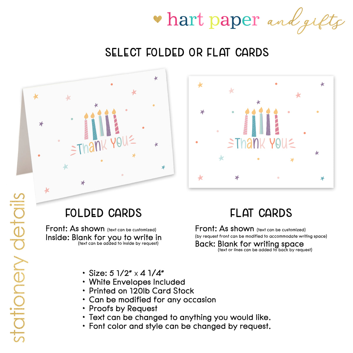 Rainbow Candles Thank You Cards Note Card Personalized Custom Stationery • Flat or Folded