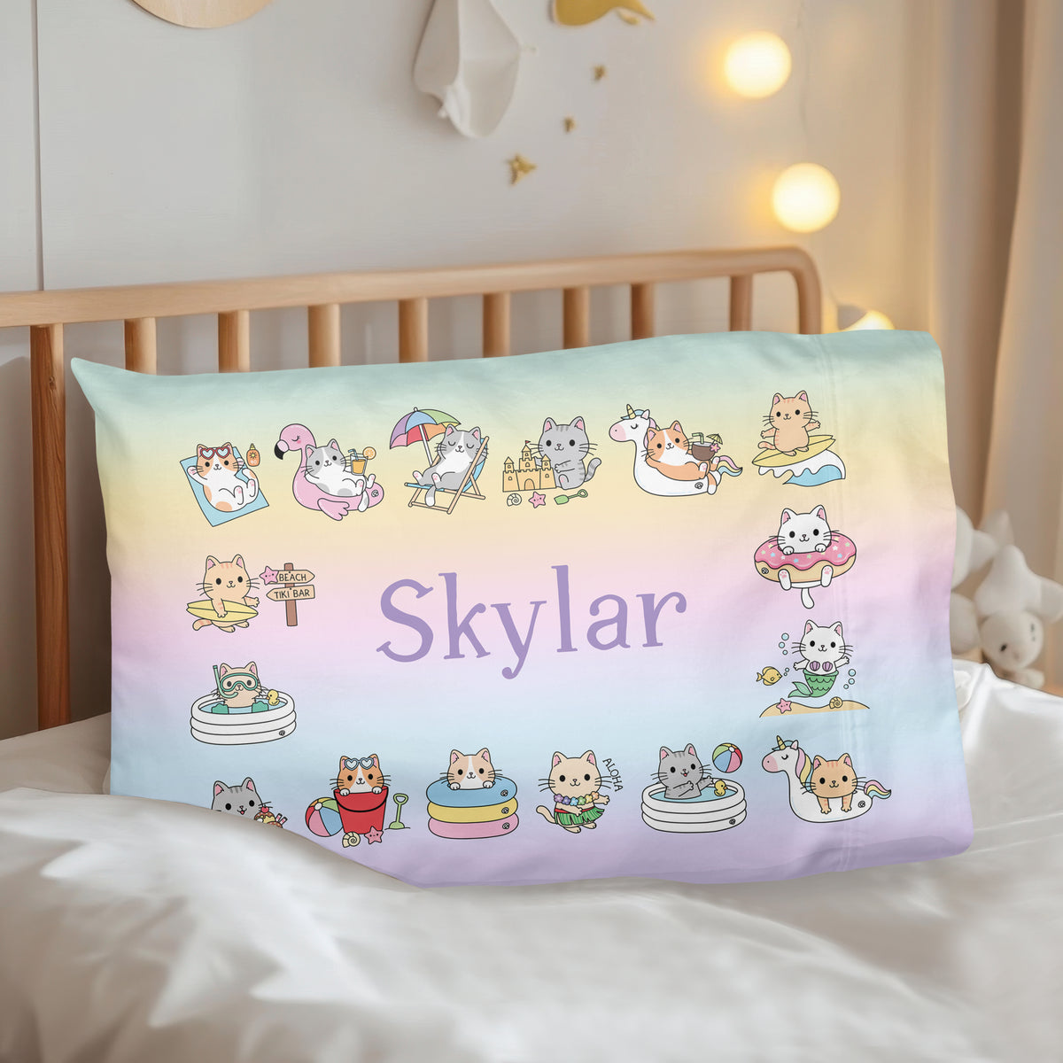 Rainbow Cat Personalized Custom Pillowcase • Standard or Toddler Size