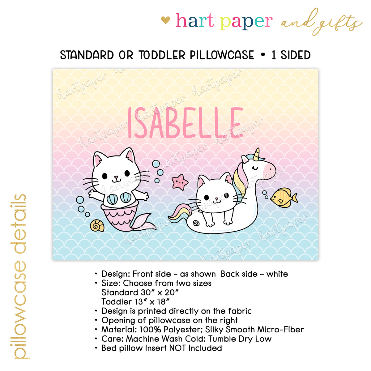 Rainbow Cat Personalized Custom Pillowcase • Standard or Toddler Size