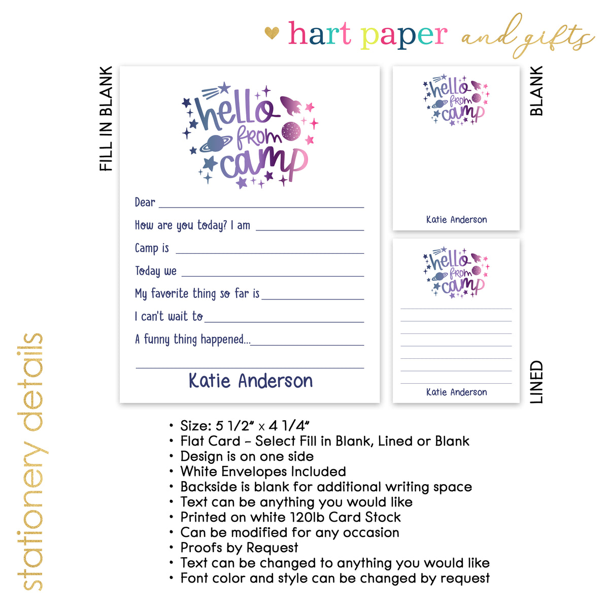 Cute & Custom Summer Camp Notecards for Kids – Fill-in-the-Blank, Blank & Lined Styles!