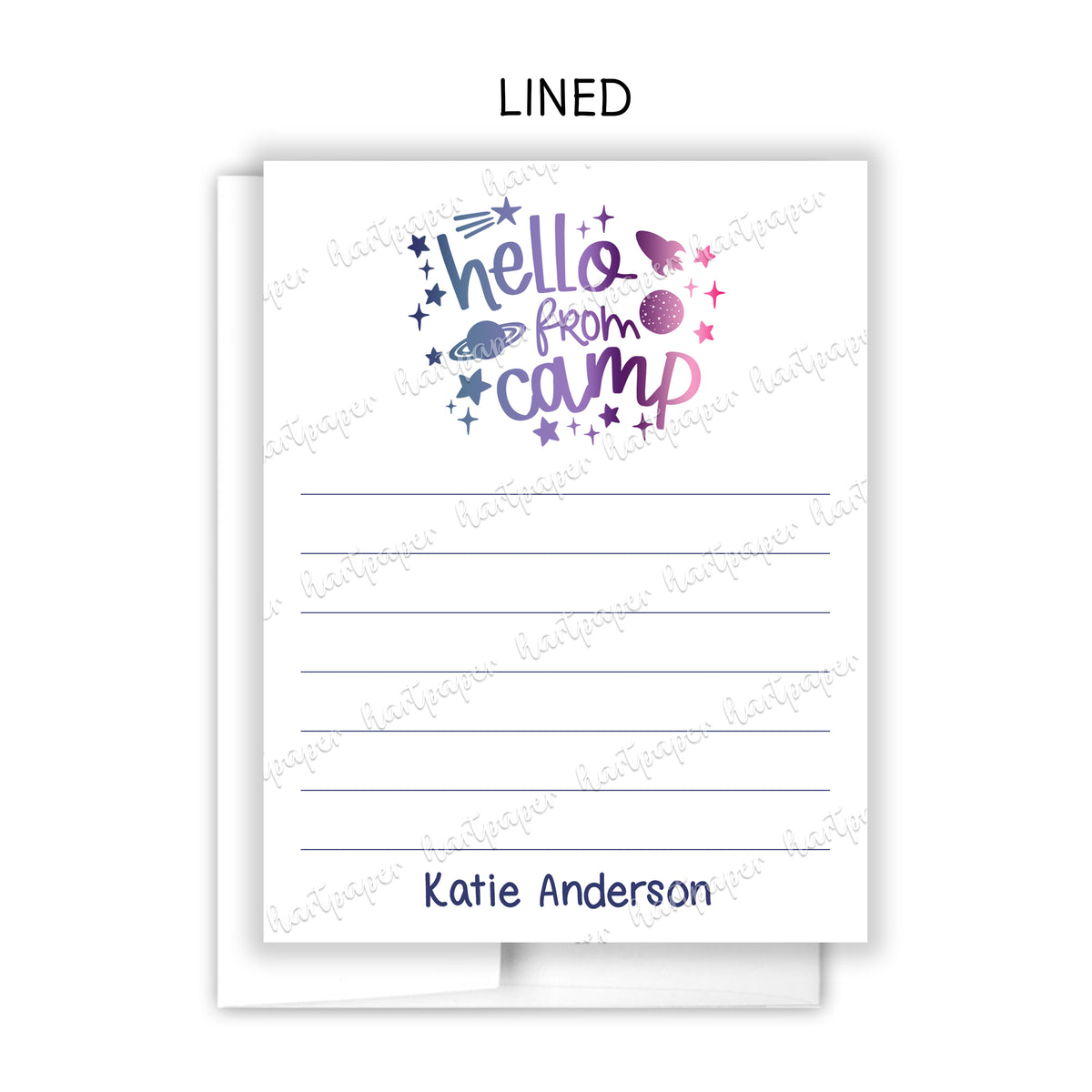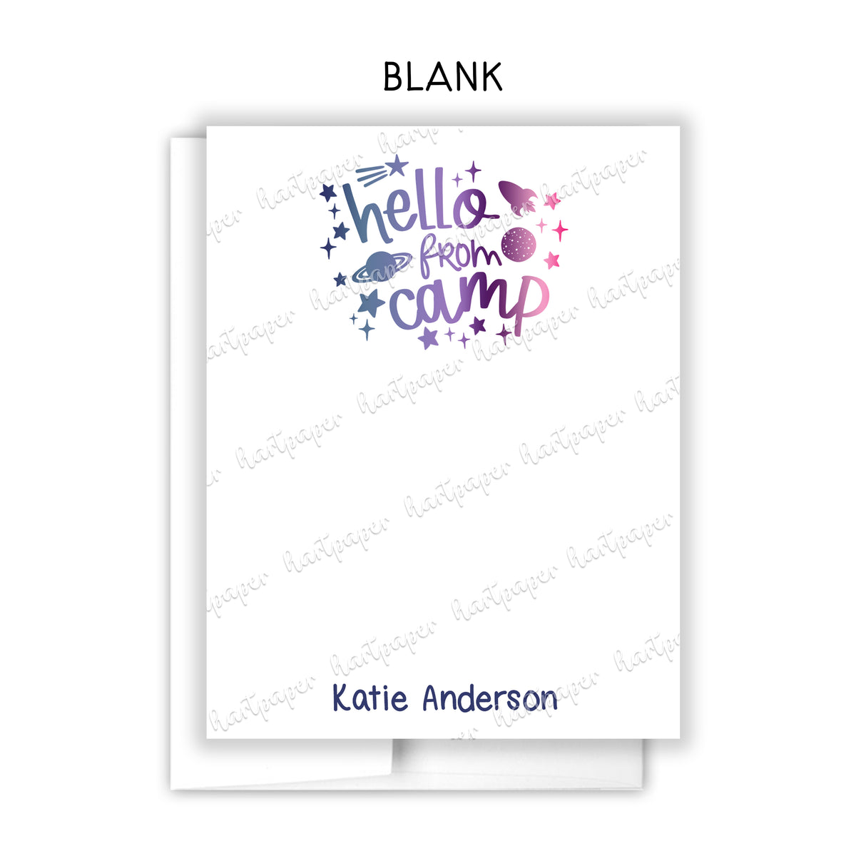 Rainbow Galaxy Hello Camp Summer Camping Note Cards Stationery Custom Personalized • Fill in Blank, Lined or Blank Cards