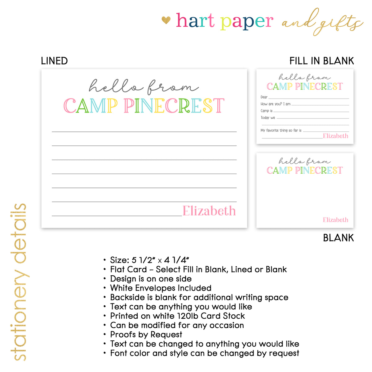 Cute & Custom Summer Camp Notecards for Kids – Fill-in-the-Blank, Blank & Lined Styles!