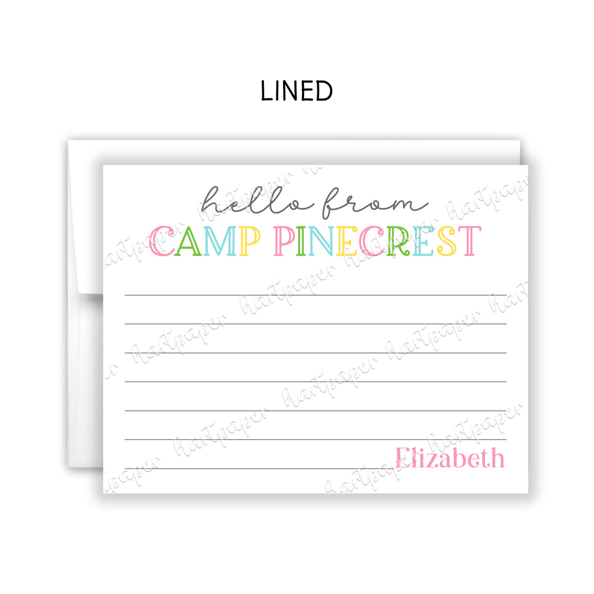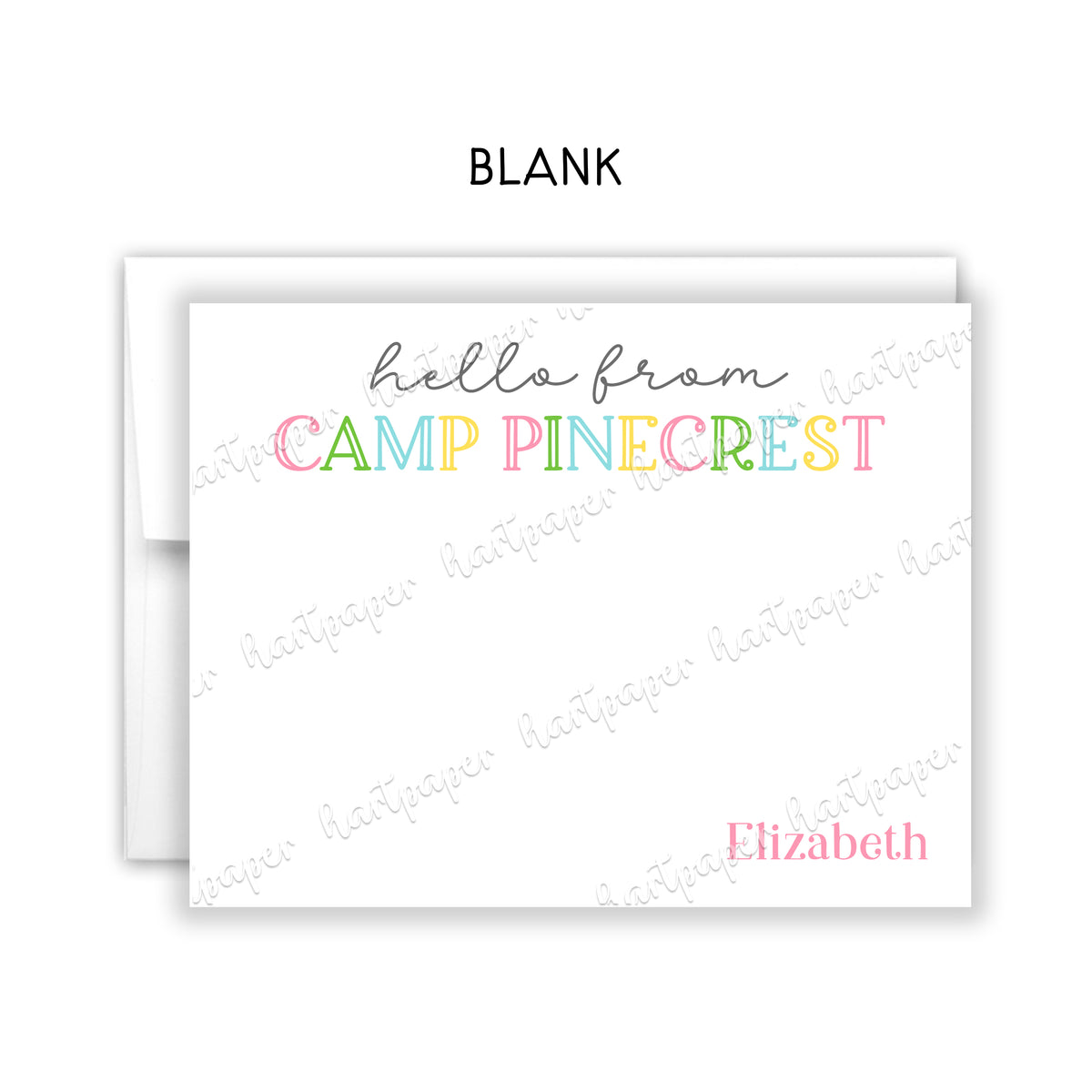 Rainbow Hello from Camp Summer Camping Note Cards Stationery Custom Personalized • Fill in Blank, Lined or Blank Cards