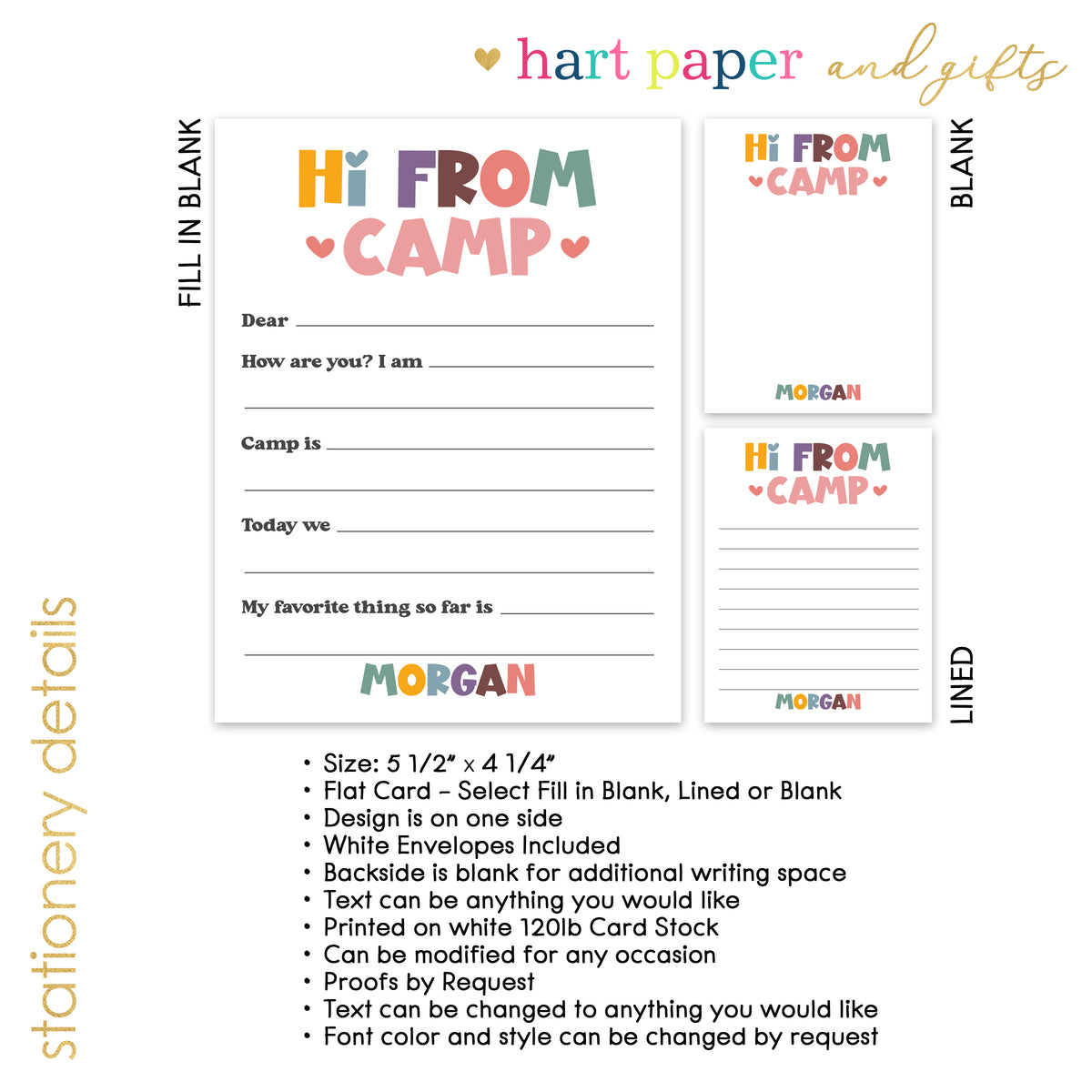 Cute & Custom Summer Camp Notecards for Kids – Fill-in-the-Blank, Blank & Lined Styles!