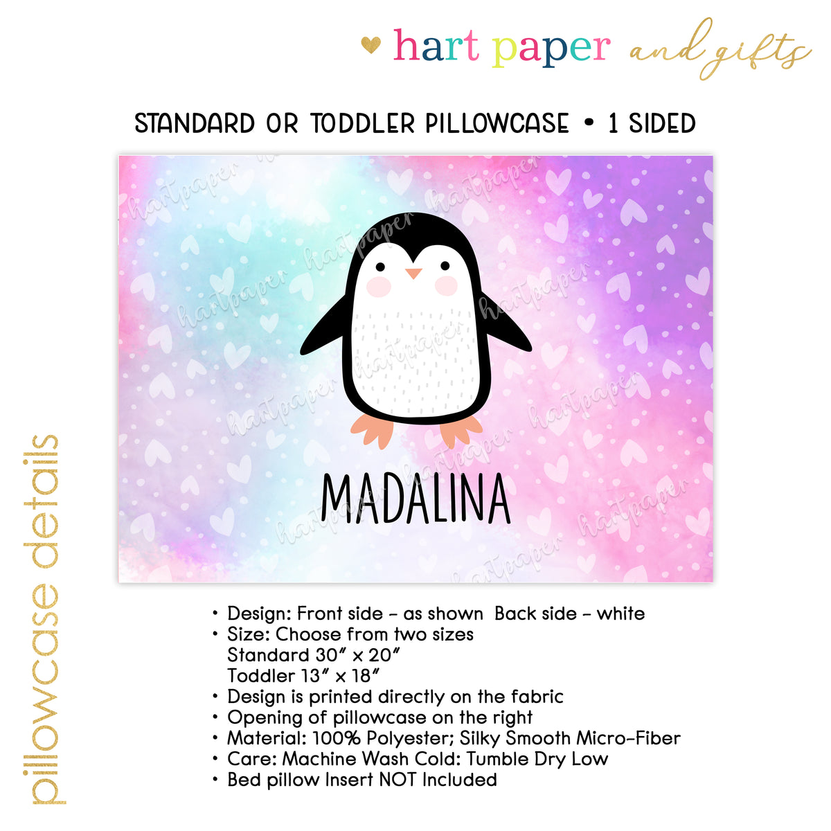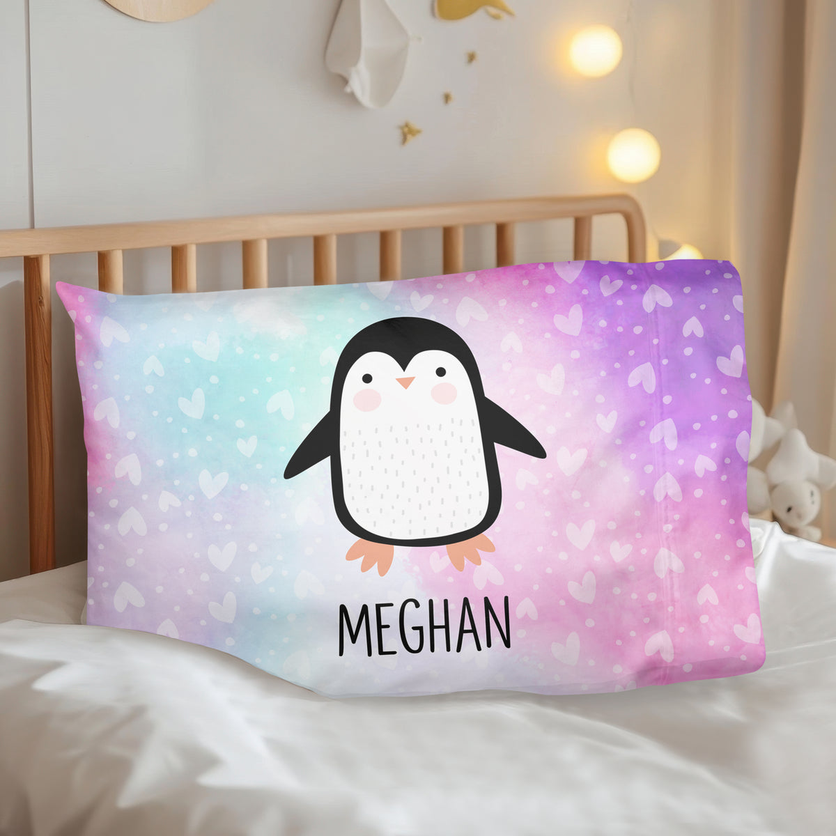 Rainbow Penguin Personalized Custom Pillowcase • Standard or Toddler Size