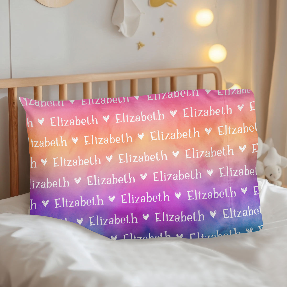 Rainbow Repeat Name Personalized Custom Pillowcase • Standard or Toddler Size
