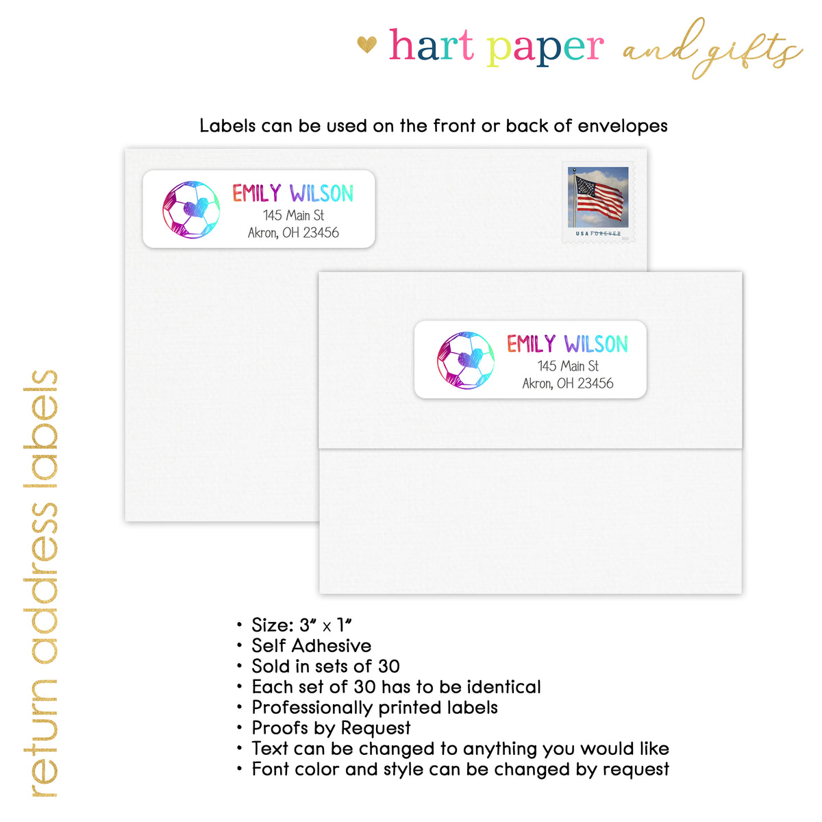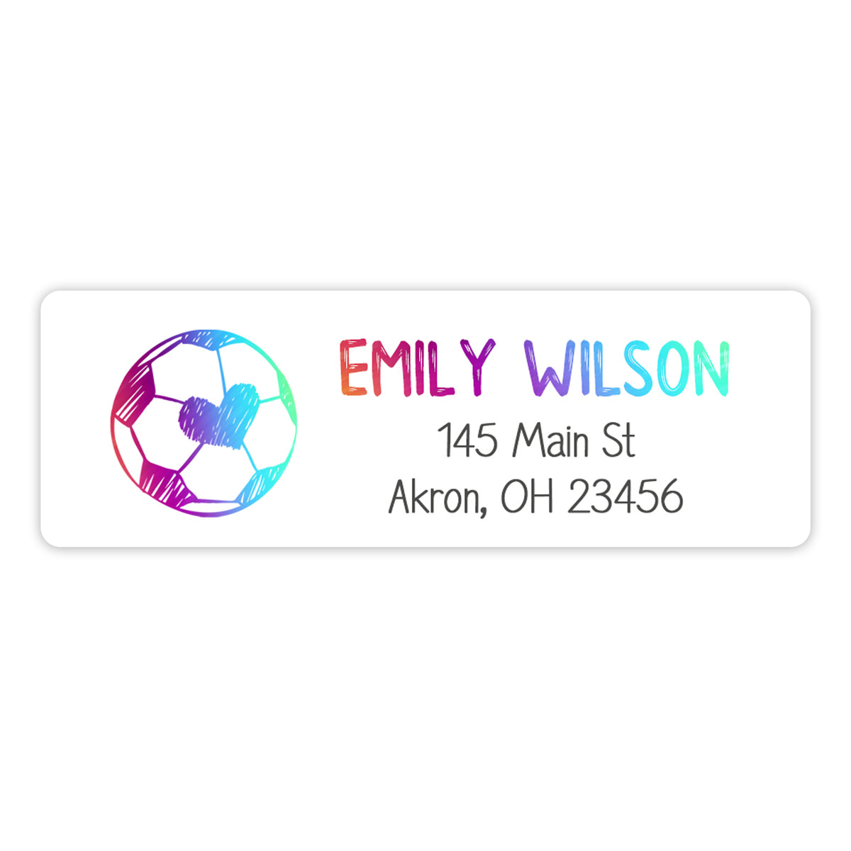 Rainbow Soccer Sports Balls Return Address Labels Personalized Custom • Self Adhesive Stickers