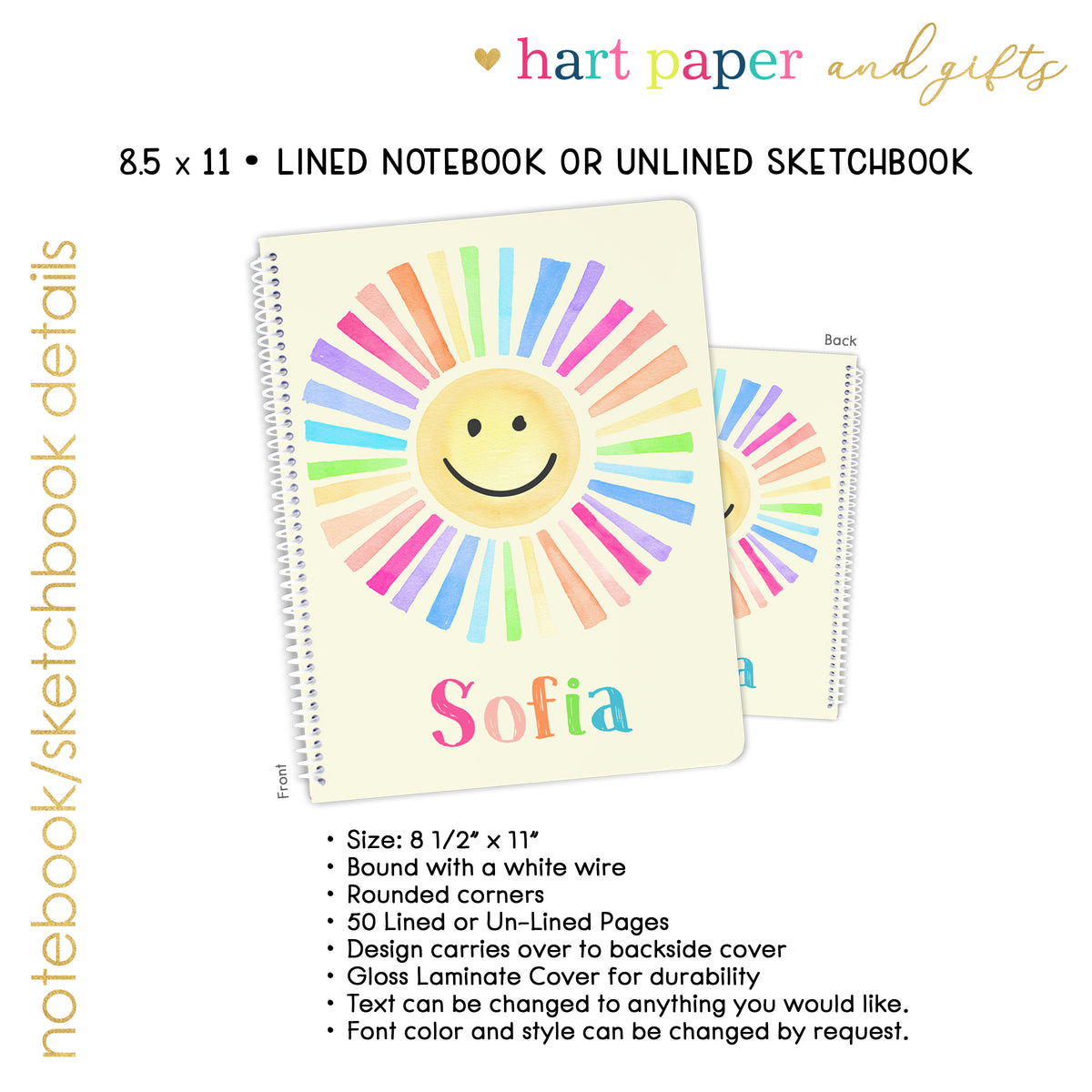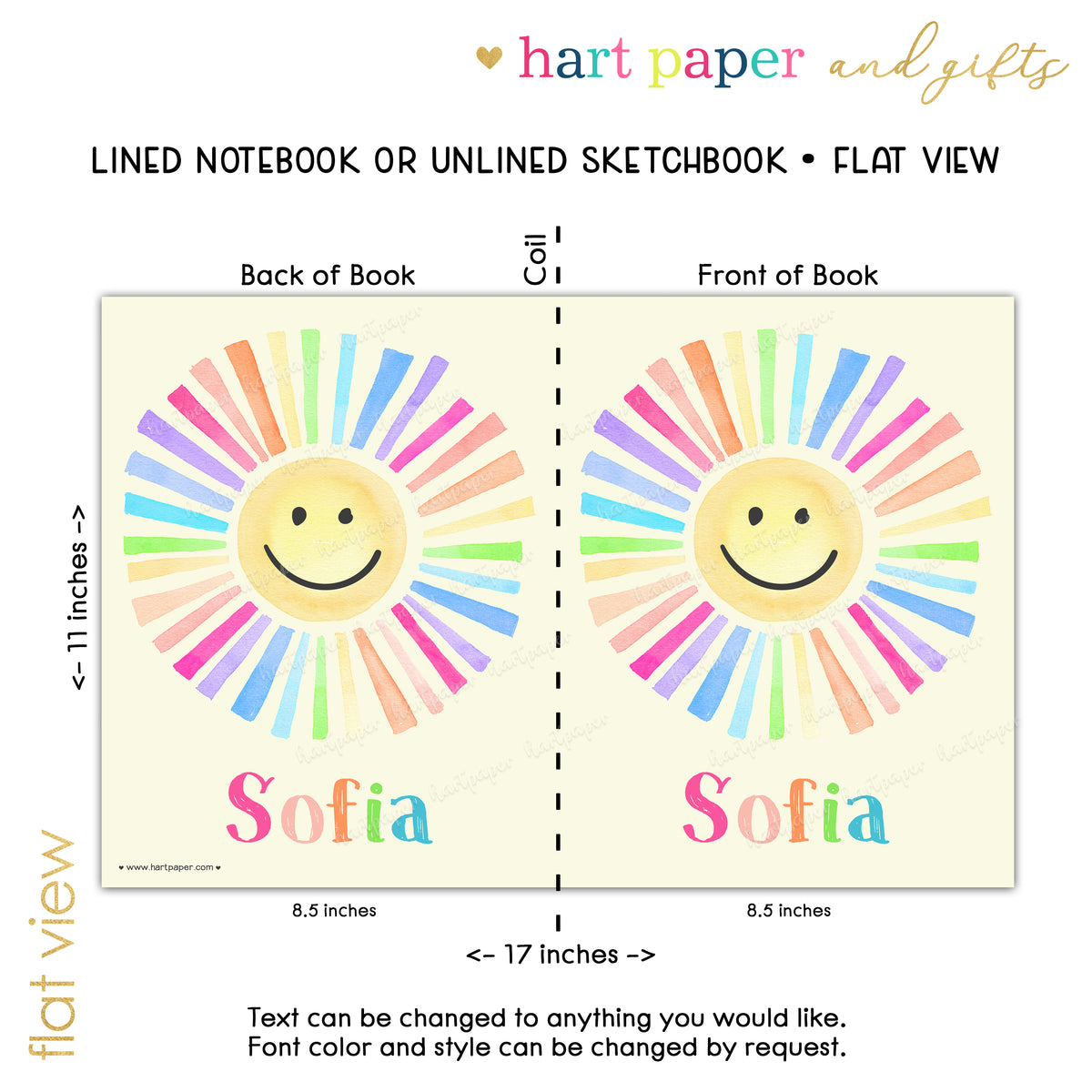 Rainbow Sun Personalized Custom Notebook or Sketchbook • School Office Supplies