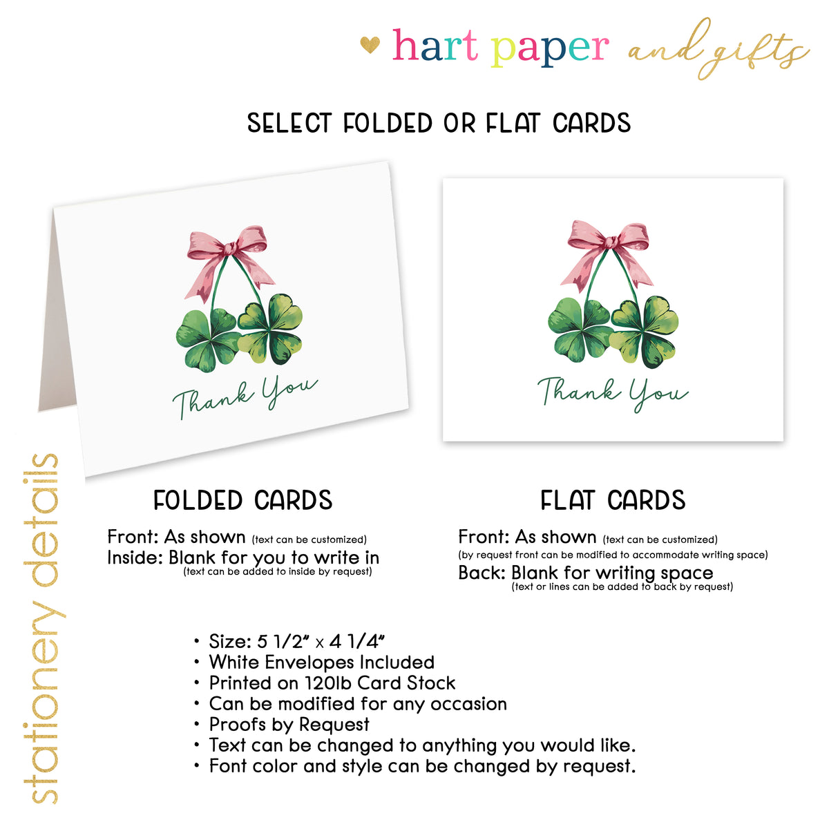 Shamrock Irish Thank You Cards Note Card Personalized Custom Stationery • Flat or Folded