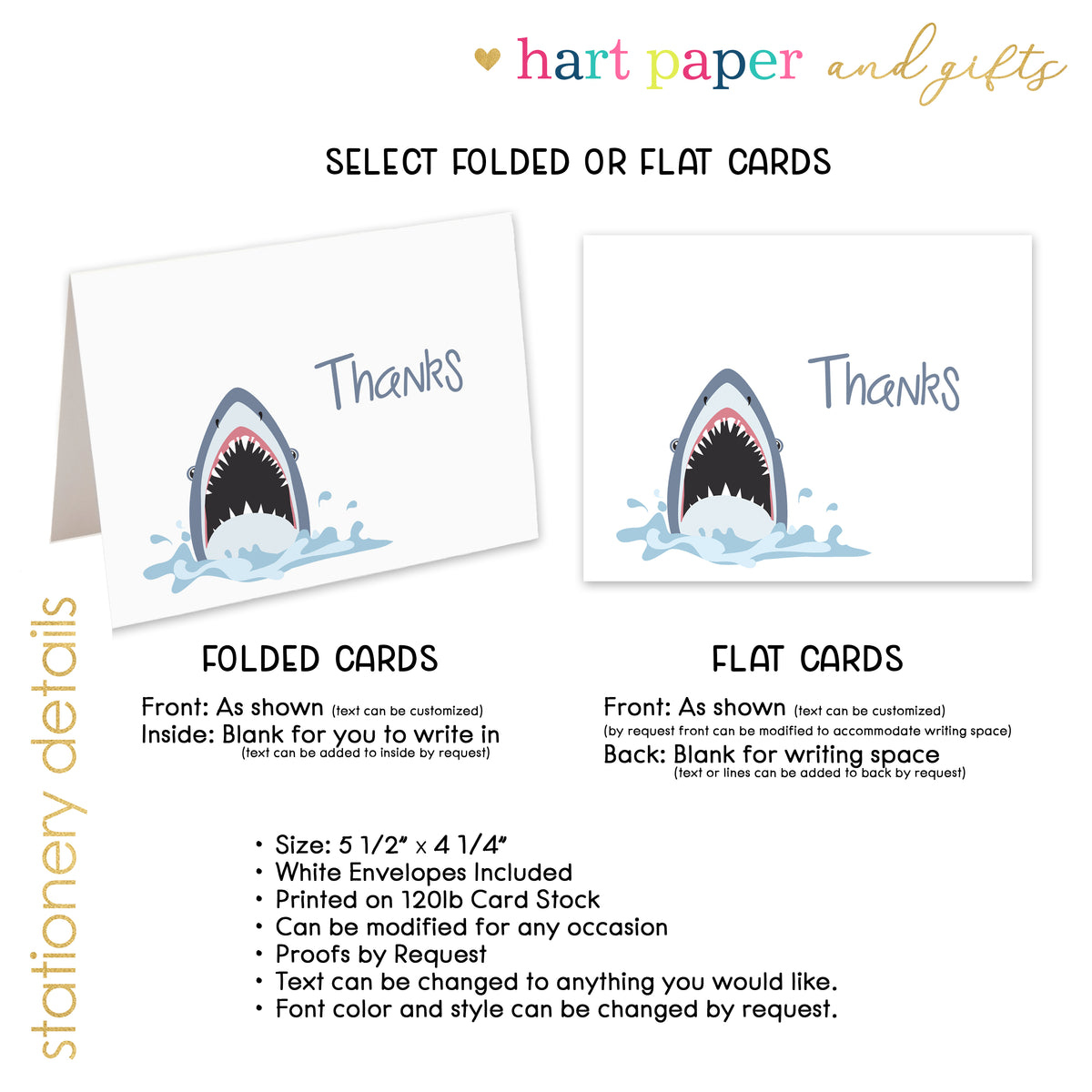 Shark Thank You Cards Note Card Personalized Custom Stationery • Flat or Folded