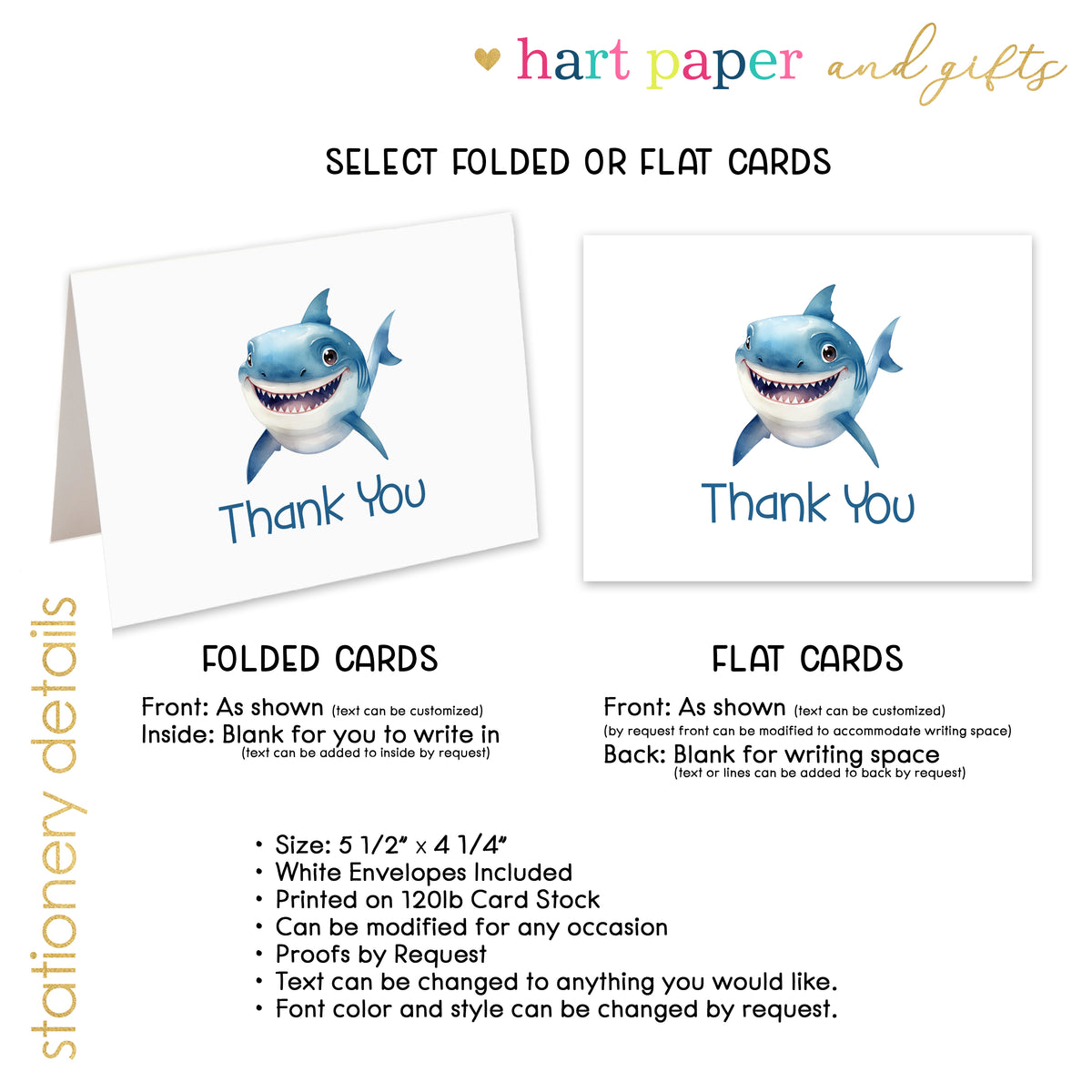 Shark Thank You Cards Note Card Personalized Custom Stationery • Flat or Folded