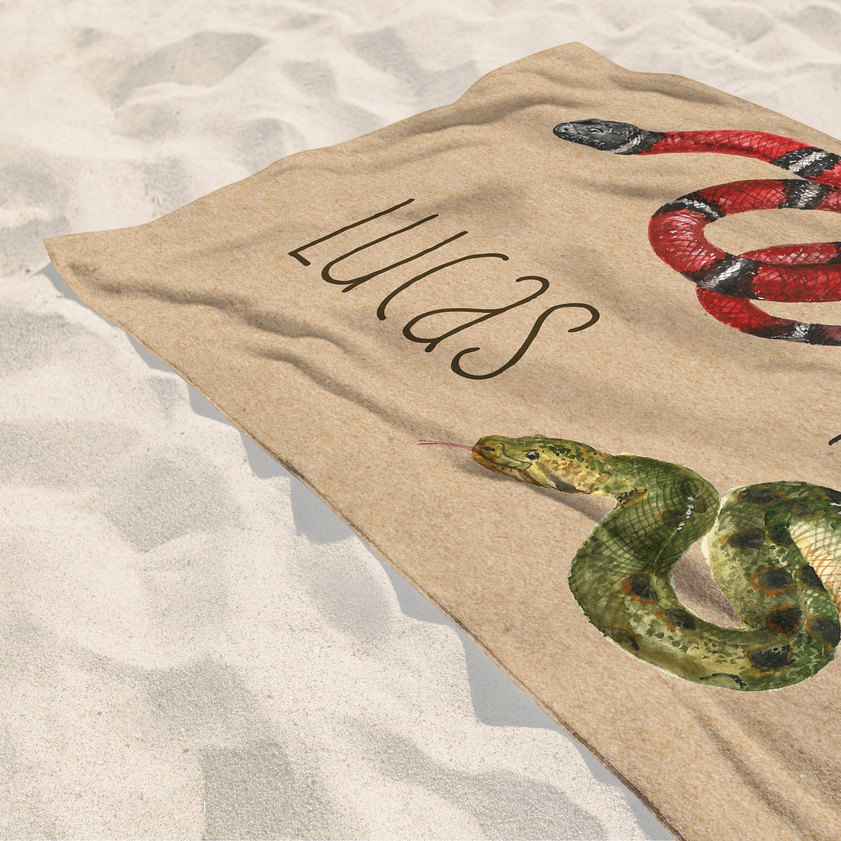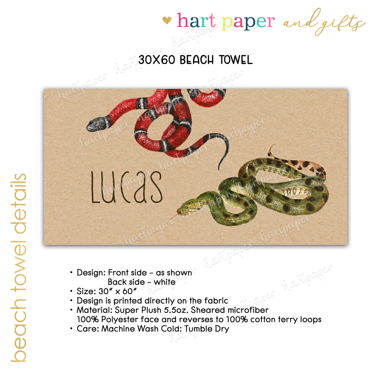 Snakes Personalized Beach Towel • Custom 30x60 Swimming Swim Bath Bathroom Pool