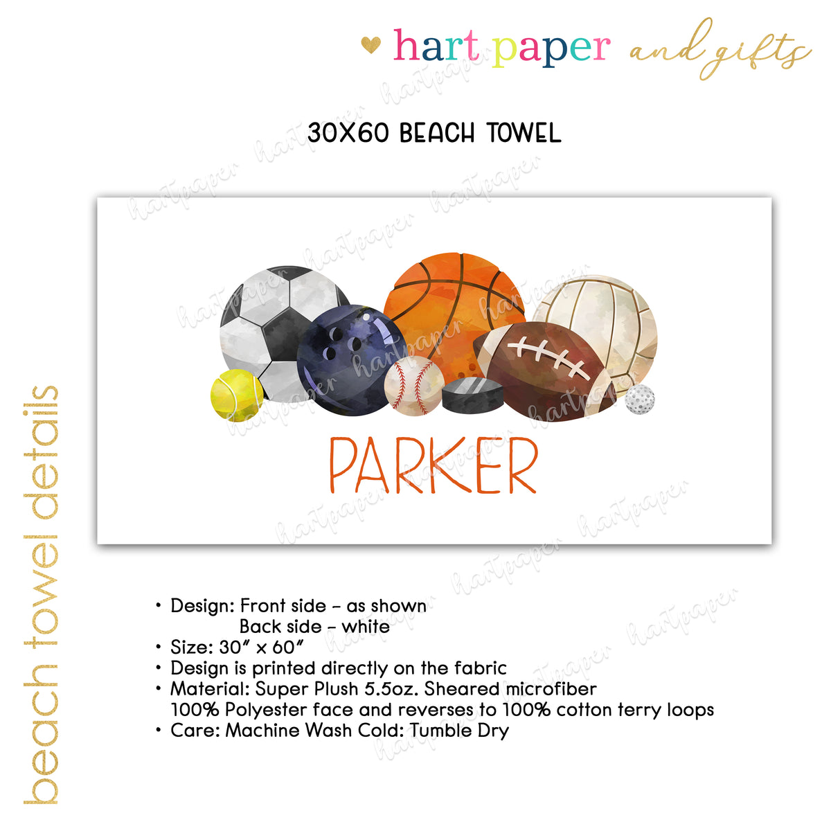 Sports Personalized Beach Towel • Custom 30x60 Swimming Swim Bath Bathroom Pool
