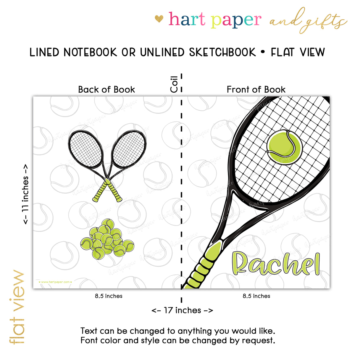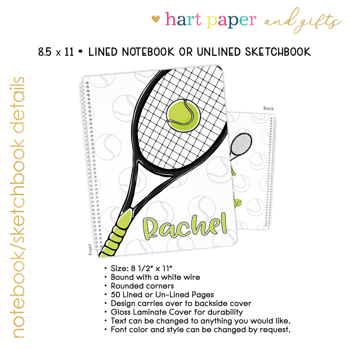 Tennis Sports Personalized Custom Notebook or Sketchbook • School Office Supplies