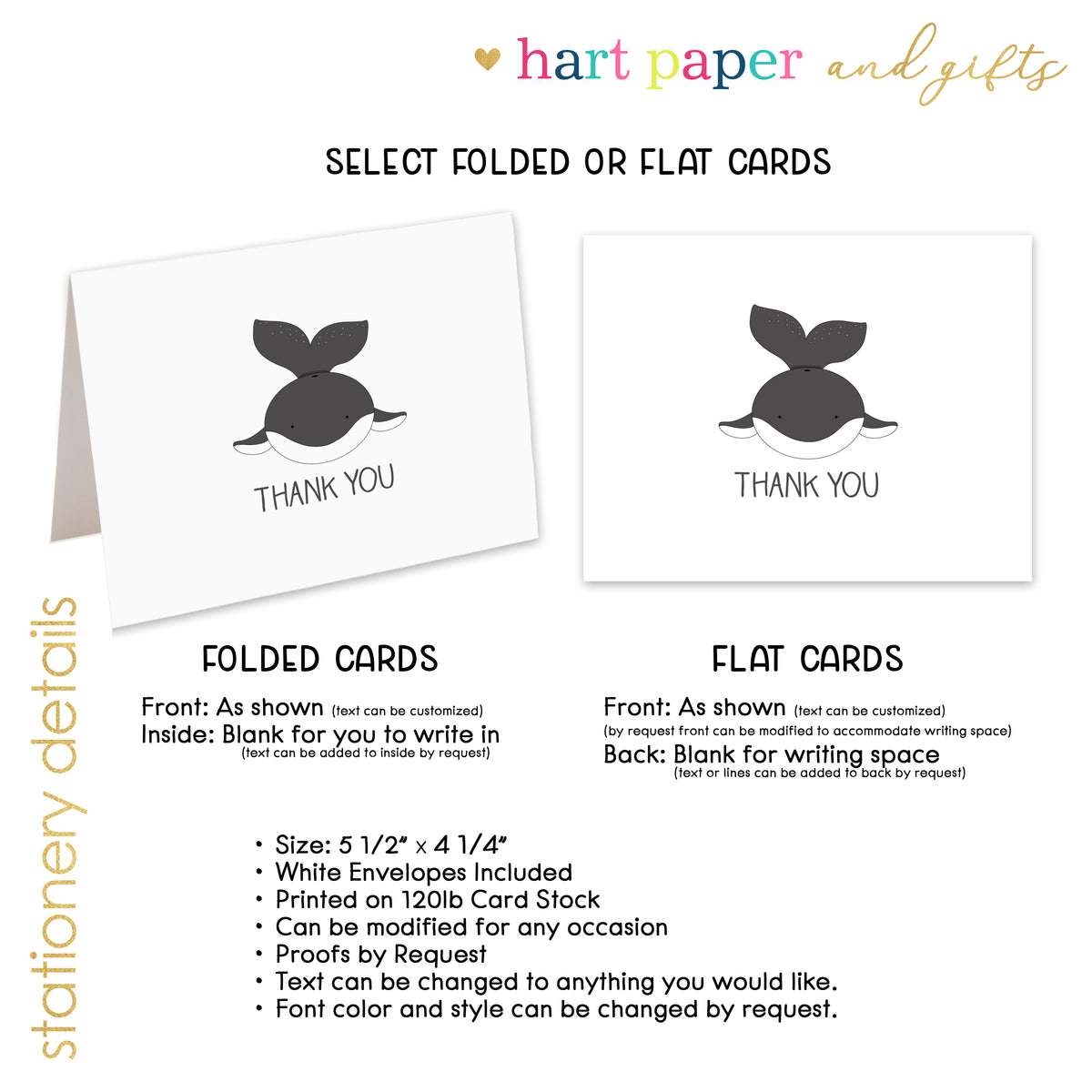 Whale Thank You Cards Note Card Personalized Custom Stationery • Flat or Folded